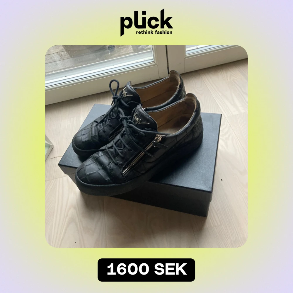 Säljer ett par svarta sneakers i skinn med coolt rutmönster. De har både snörning och dragkedja för en unik look. Skorna är i bra skick. Perfekta för höst och vår. Pris kan diskuteras vid snabb affär. Box följer med