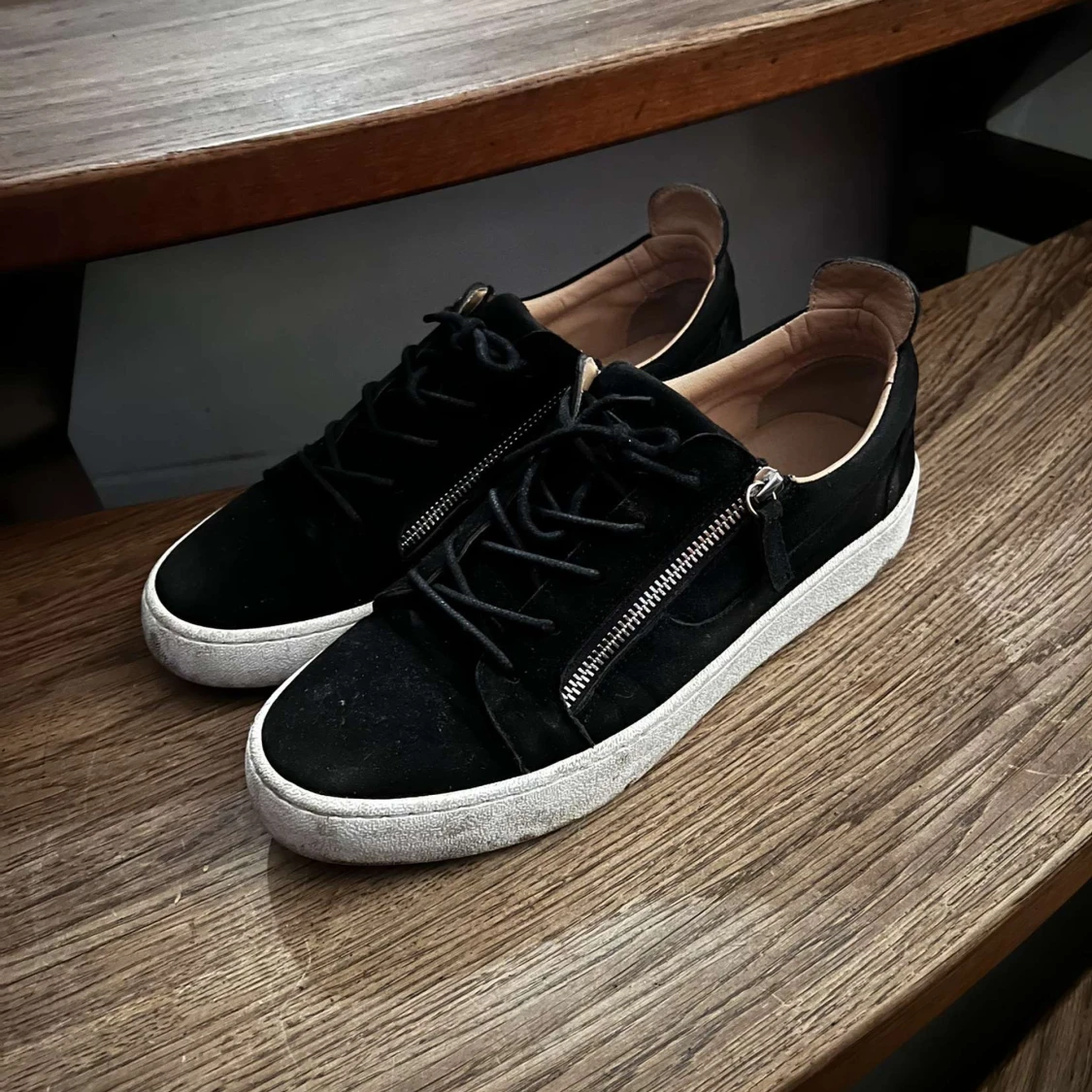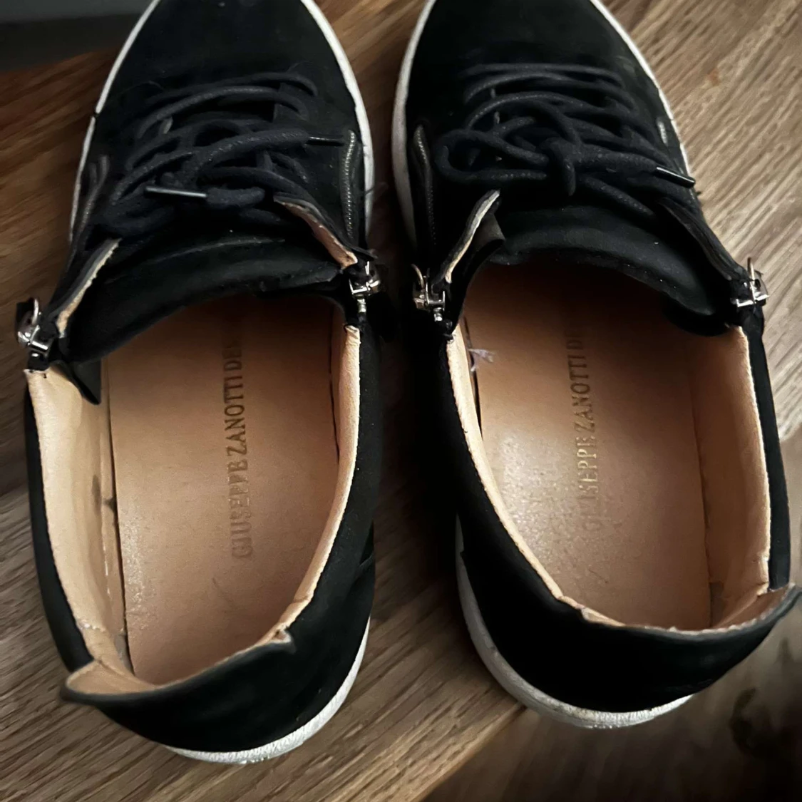 Snygga svarta sneakers från giuzeppi med dragkedja på sidan och snörning. Skorna har en vit sula och är tillverkade i mocka för en stilren look. Perfekta för en trendig vardagsstil.