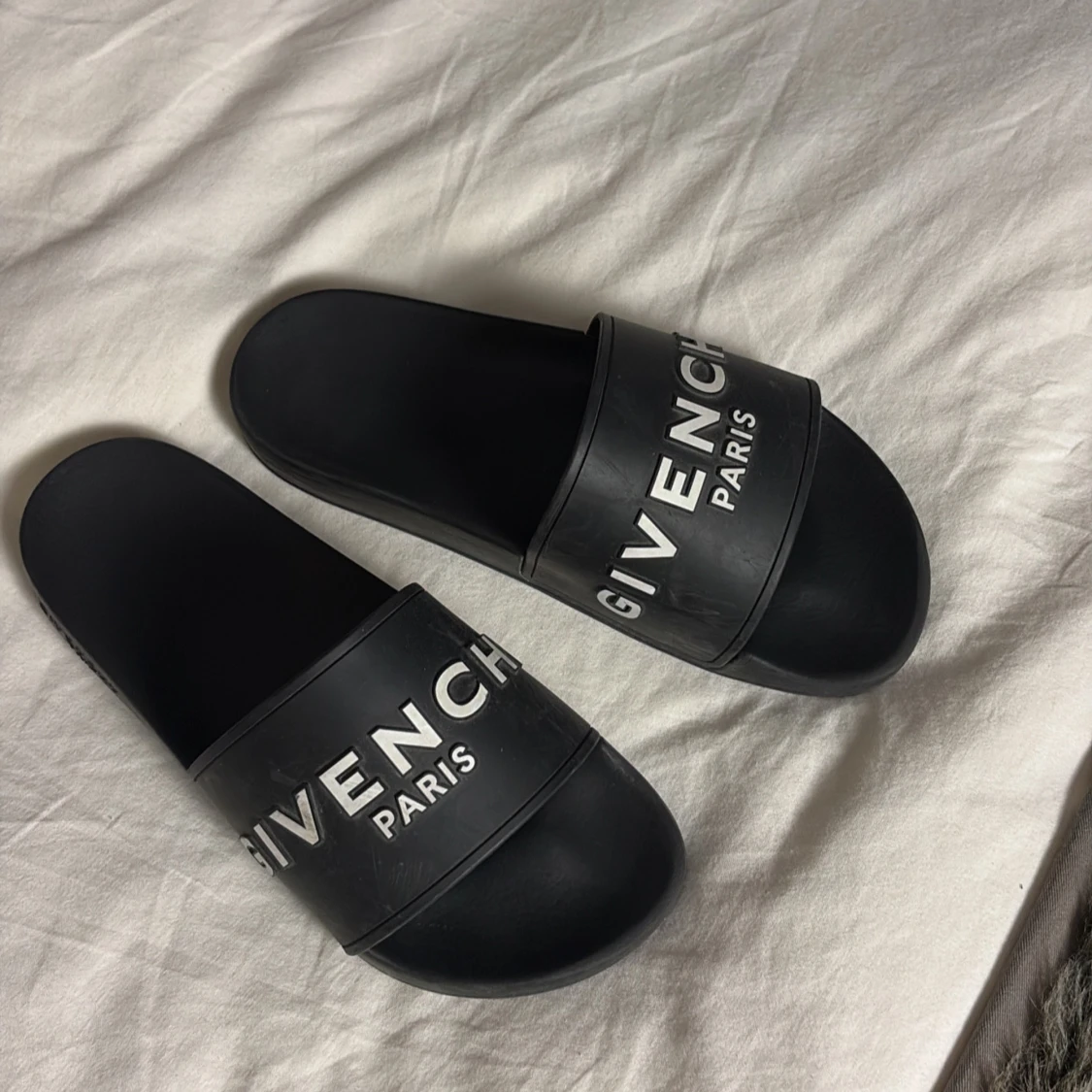 Stilrena givenchy slides i str 42 köpts på givenchy i Paris. Bra condition men använda som syns på bilden. Tveka inte på att skriva vid fler frågor!