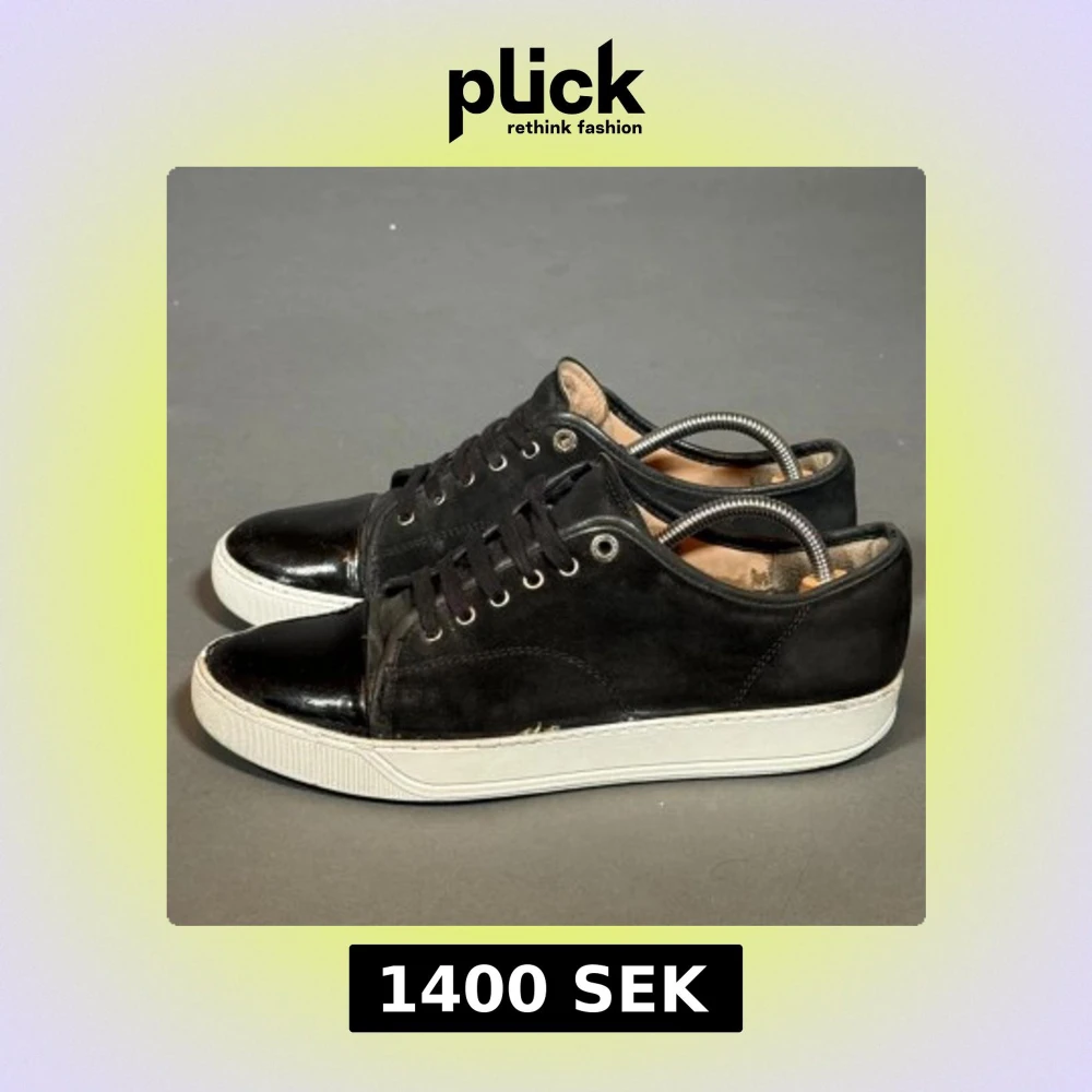 Klassiska Lanvin Cap Toe i svart med lackad/glansig tå. Storlek 42 (passar även 43). Skorna är använda men fortfarande i bra skick. Skick: ca 6.5/10 | Defekter: Ej original sula, slitage vid sulan | Medföljer: Inget (endast skorna) | Passform: Normal, något stor i storleken | sulan är målad med vit färg!
