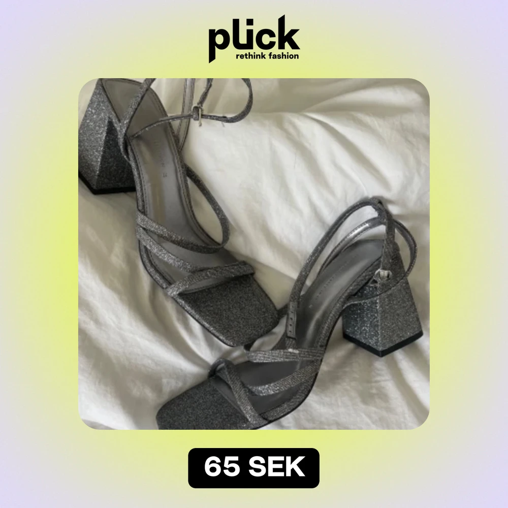 Oanvända silverglittriga klackar från pull & bear. Klacken är ca. 8 cm hög🪩