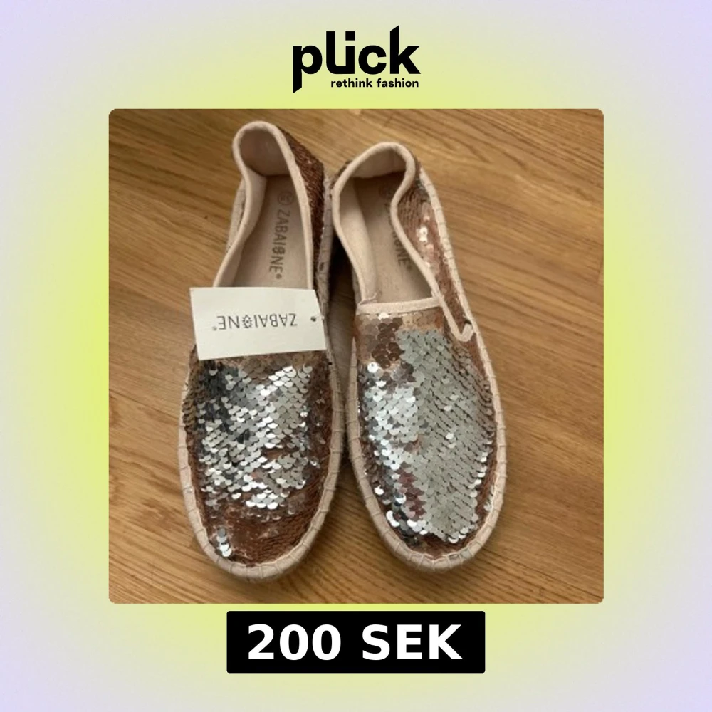Snygga loafers från Zabaione täckta med glittriga paljetter i silver och rosa. Skorna har en bekväm passform och en flätad sula som ger en somrig känsla. Perfekta för att sätta lite extra bling på din outfit!