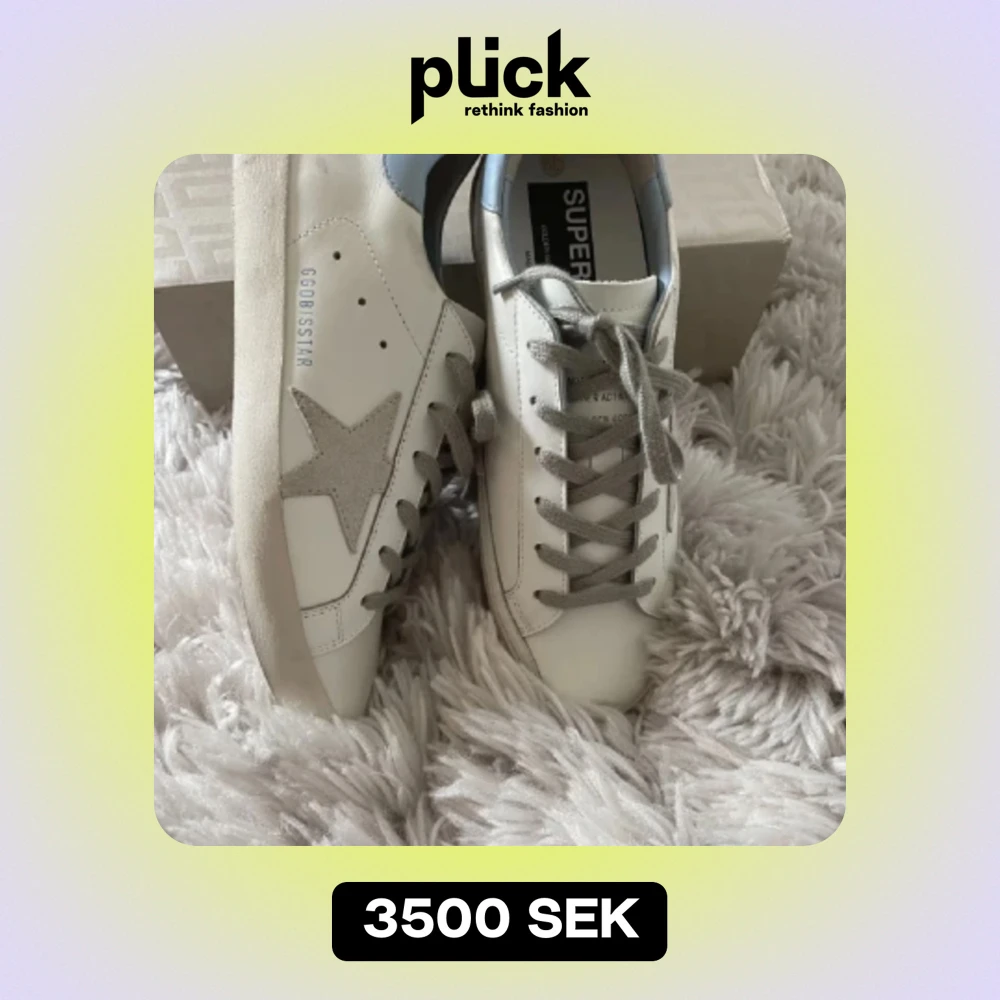 Säljer mina varsamt använda Golden goose skor, endast använda ett fåtal gånger. De är vita med babyblå häl, och är i storlek 39. , men har även passat mig som har 38. Priset kan diskuteras!