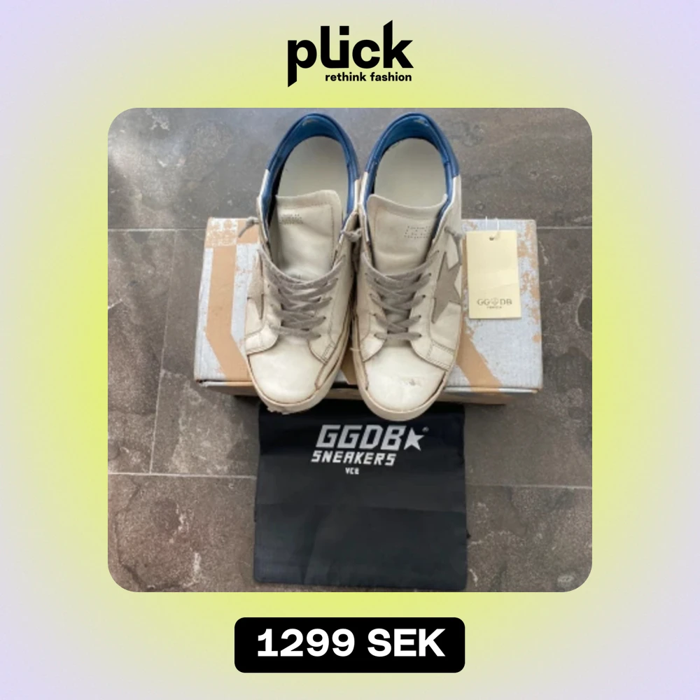Tja säljer mina väl använda golden goose. Sulan har gått upp på båda skorna där bak och även lite där fram på vänster sko. Sen har skon tappat pyttelite färg på höger topp på skon. Allt detta kan lösas hos en skomakare!. Skorna säljs mycket billigt.