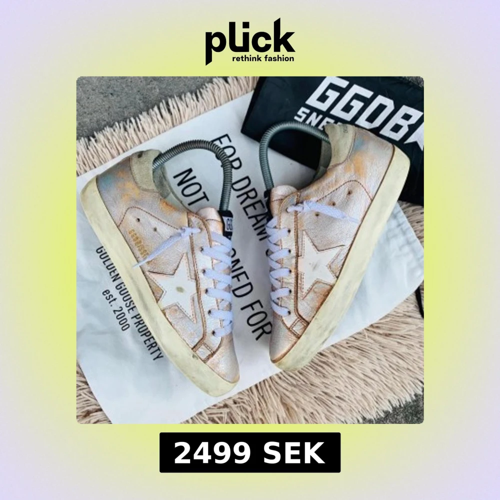 Snygga Golden Goose sneakers i en unik design med stjärndetalj på sidan. Skorna har en sliten look med vita snören och en beige ton. Perfekta för en avslappnad stil med en touch av lyx.