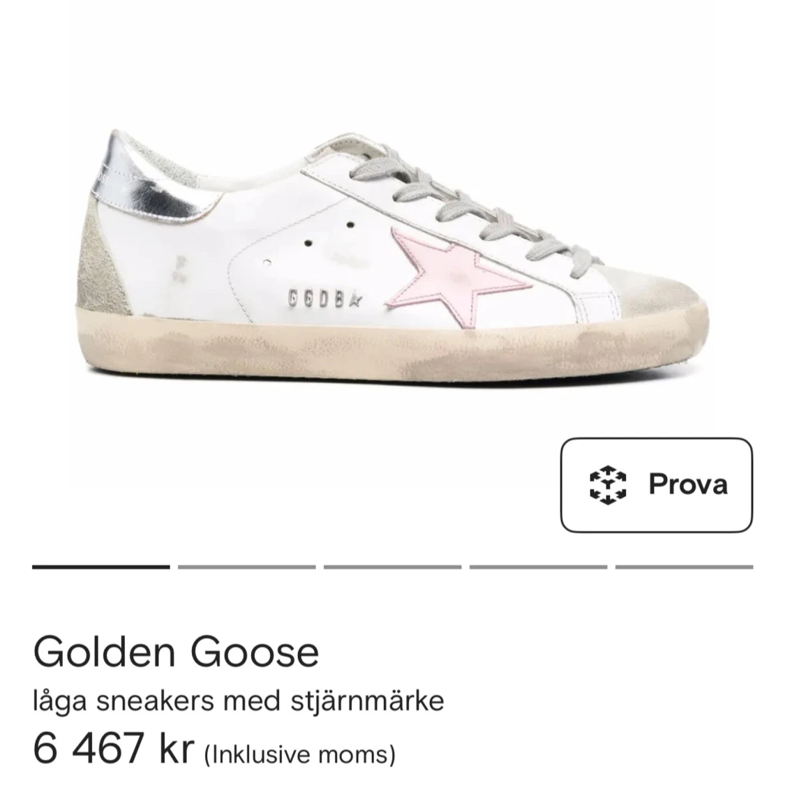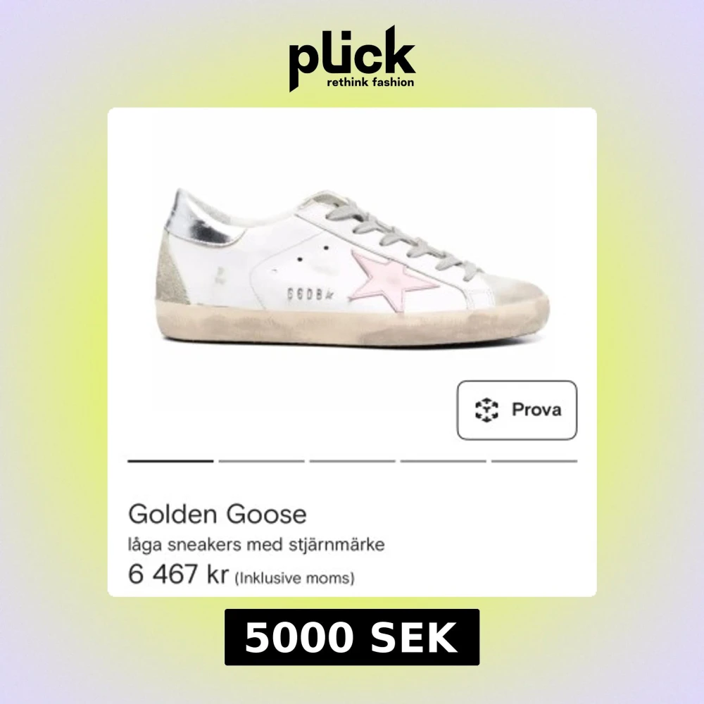 Snygga låga sneakers från Golden Goose i vitt skinn med en ikonisk rosa stjärna på sidan, silverfärgad häl och grå snörning. Skorna har en beige sula och detaljer i mocka för en cool, avslappnad look.