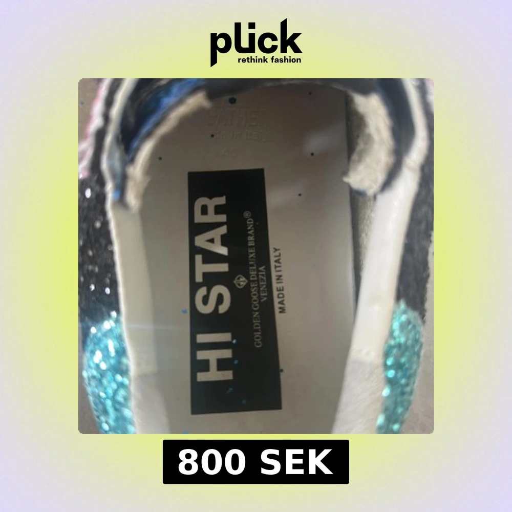 Färgstarka Golden Goose Hi Star sneakers med glitter i blått, rosa, svart, turkos och guld. Skorna har leopardmönstrade snören och en stjärndetalj på sidan. Tillverkade i Italien med skinnfoder och platt sula. Perfekta till fester partys mm.!❤️❤️