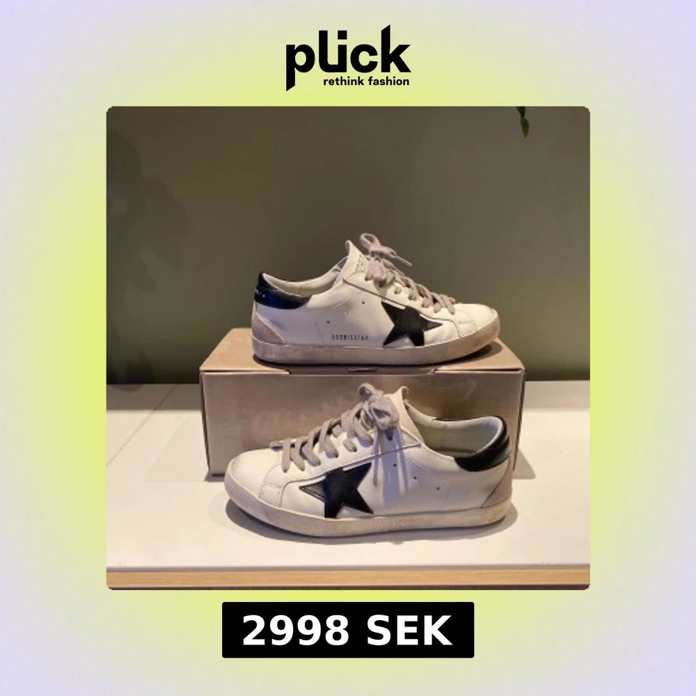 Golden Goose sneakers i vitt skinn med svart stjärna på sidan och svart häl. Grå snörning och platt sula. Klassisk låg modell med rund tå och coola detaljer. Perfekta för dig som gillar streetstyle och vill ha en unik touch på outfiten. STR 40 - Nypris 4500+