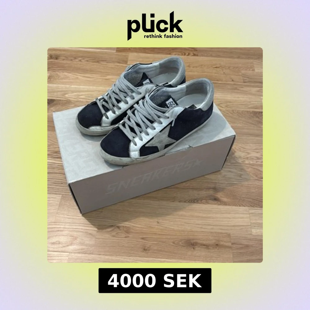 Golden Goose sneakers med svart mocka, vita skinnpaneler och den ikoniska stjärnan i grå mocka på sidan. Storlek 40.
