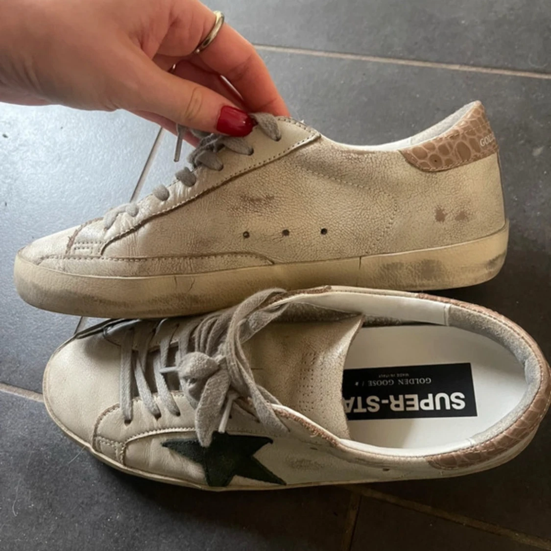 Intressekoll på mina älskade golden goose skor, de är använda men i gott skick! Gör varje outfit lite extra snyggare🥰 köpta på vinted för ungefär 5-6 månader sedan för runt 4300💕