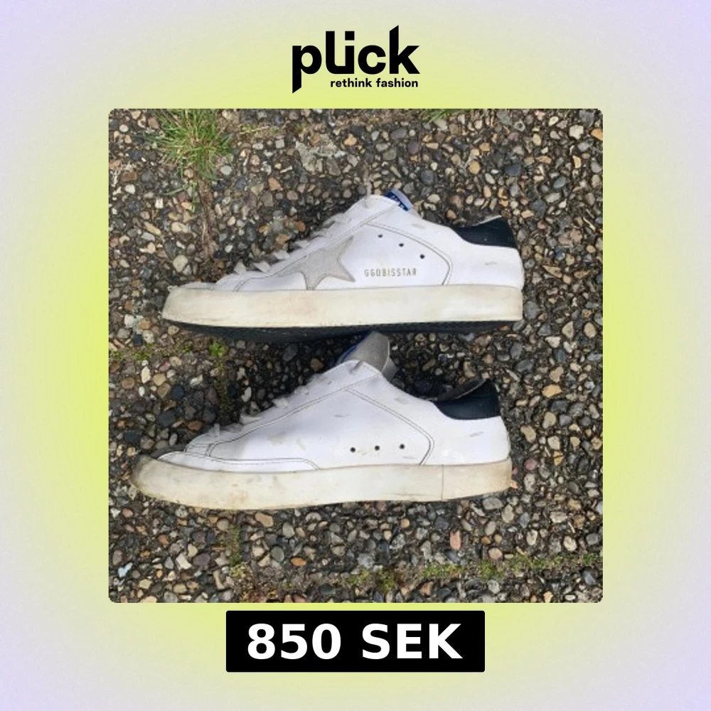 Ett par golden goose skor i storlek 41. Bara trasig på vänster skon där de gått upp på sidan och vid tårna men har limmat och dem sitter fast än så länge, högerskott är det inga bekymmer, har sko låda och kvitto men dem ingår inte, ni kan kontakta mig om ni vill ha flera bilder på skorna eller kvitto och lådan