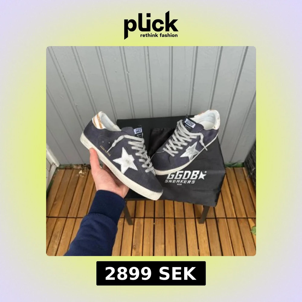 Snygga Golden Goose sneakers i mörkblått med vit stjärna på sidan och grå snörning. Skorna har en vit sula och detaljer i beige och vitt baktill. Perfekta för dig som gillar en cool och avslappnad stil.