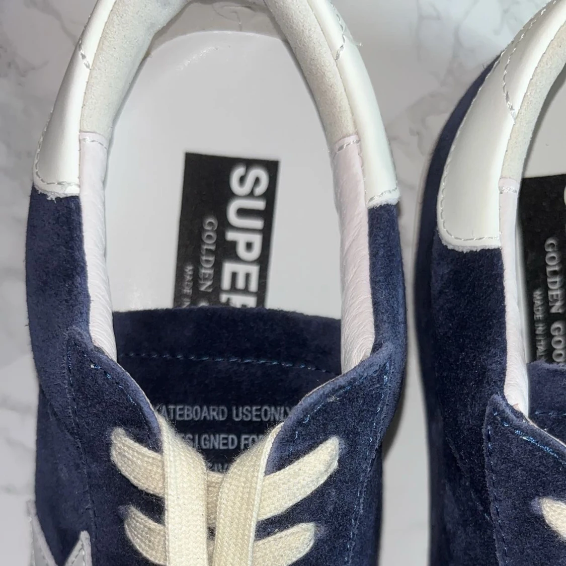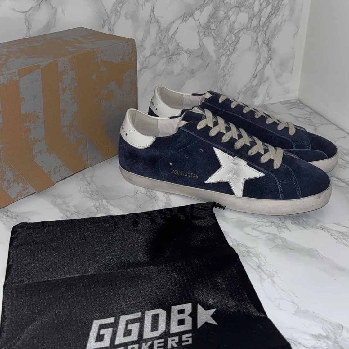 Hej,säljer mina navy blue Golden goose i storlek 43,Skorna är i mycket bra skick och dom har inga defekter osv.vid frågor och funderingar är det bara att skriva