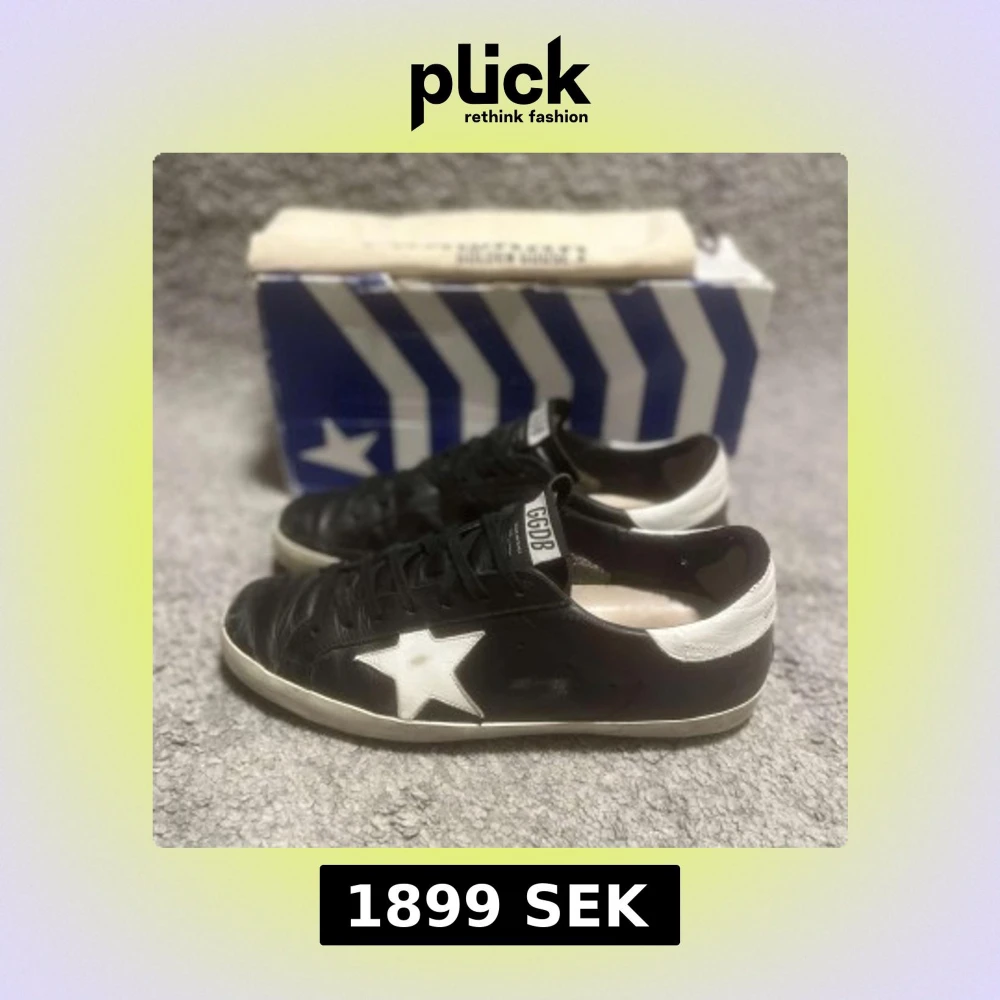 Hej, säljer skorna åt en polare ”es.shopen” Säljer nu mina otroligt snygga Golden Goose sneakers i en eftertraktad färg och model. Storlek: EU 43 / UK 9 Skick: 7/10, bra skick över lag, förutom några få skavanker samt att jag tidigare lagat en liten slitning vid hälen på skon med hjälp av självhäftande lagningslappar. Nypris: runt 5000kr. Hör av er för mer bilder och övrig information! Mvh, Malte