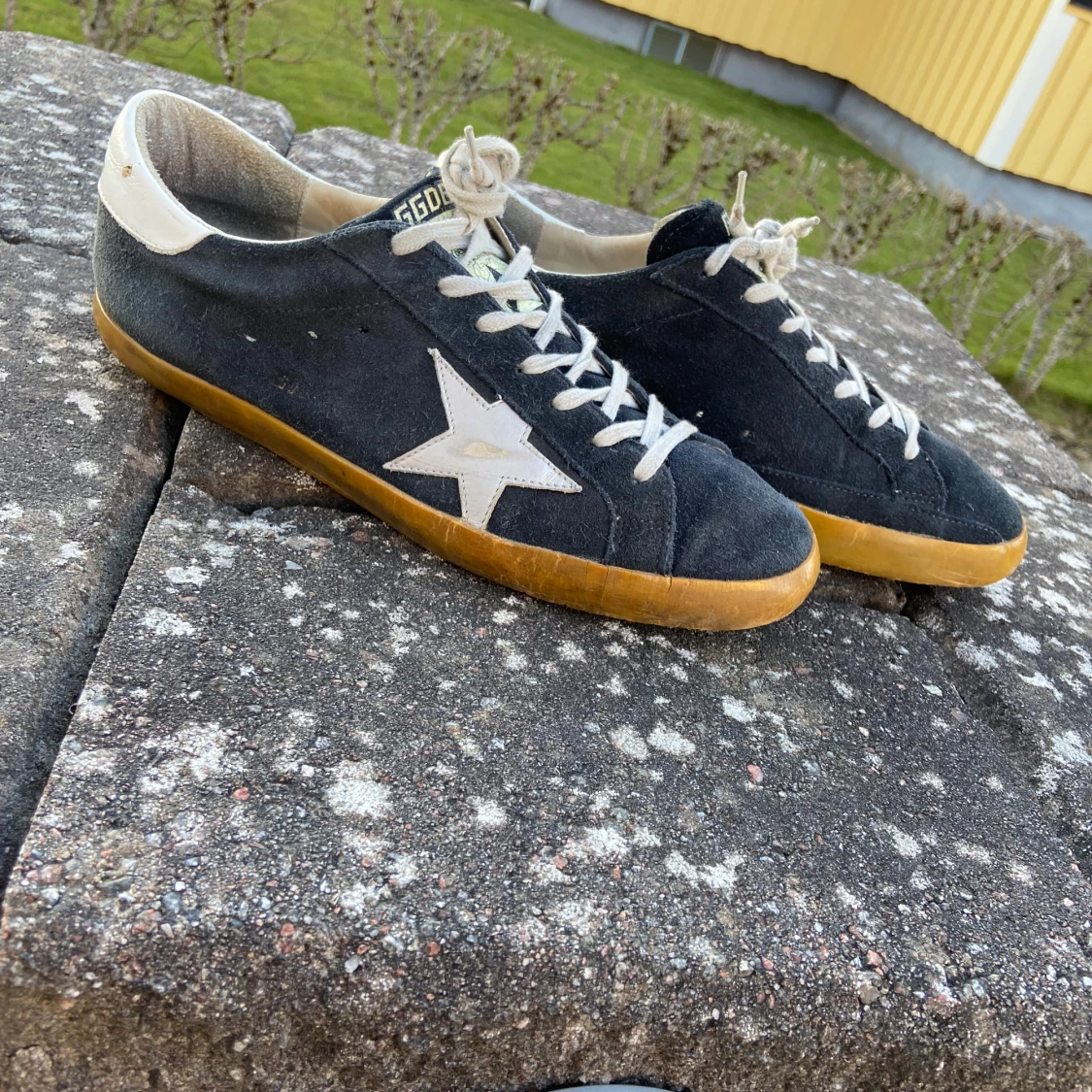 Säljer dessa snygga Golden goose skor i mörk blå mocka, dessa passar verkligen perfekt nu till sommaren! Priset är förhandlingsbart. Nypris 5000-6000