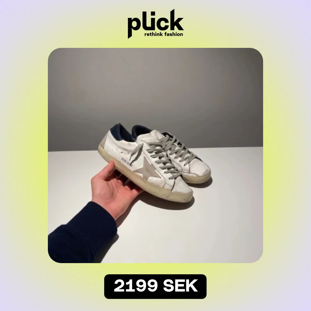 Golden goose med blå back, skorna är i storlek 42 fits 42/43 och är i fortfarande bra skick!
