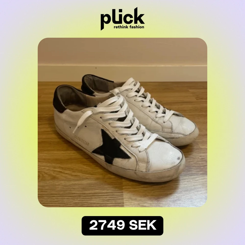 Tjena! Nu säljer vi dessa riktigt stilrena skorna ifrån Golden Goose! Skorna är i använt skick (8/10) och inget og tillkommer tyvärr, retail pris ≈ 5 000, vårat pris: 2349 ! Storleken är 42 men passar oftast 0,5-1 storlek större också. Hör av er!