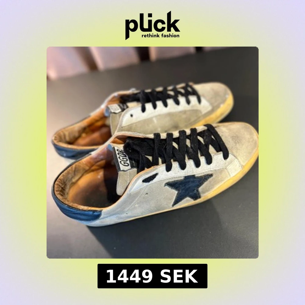 Tja! Nu säljer vi dessa feta Golden goose sneakers i storleken 43. Skicket på dessa är 6/10 eftersom att sulan på vänster sko är lite lös men det går att fixa jätte lätt med lite lim 👍. Priset kan diskuteras vid snabb affär.