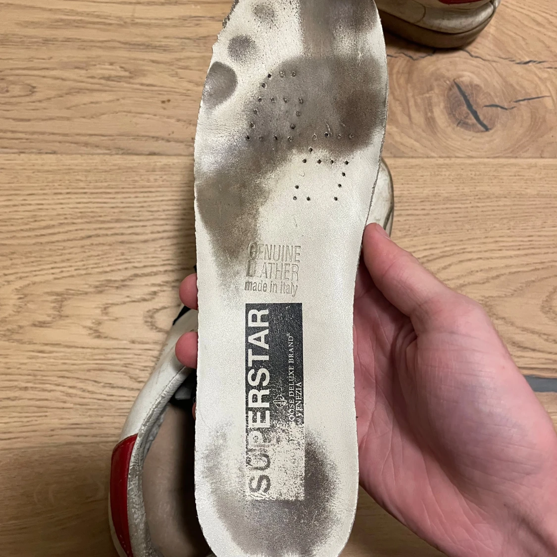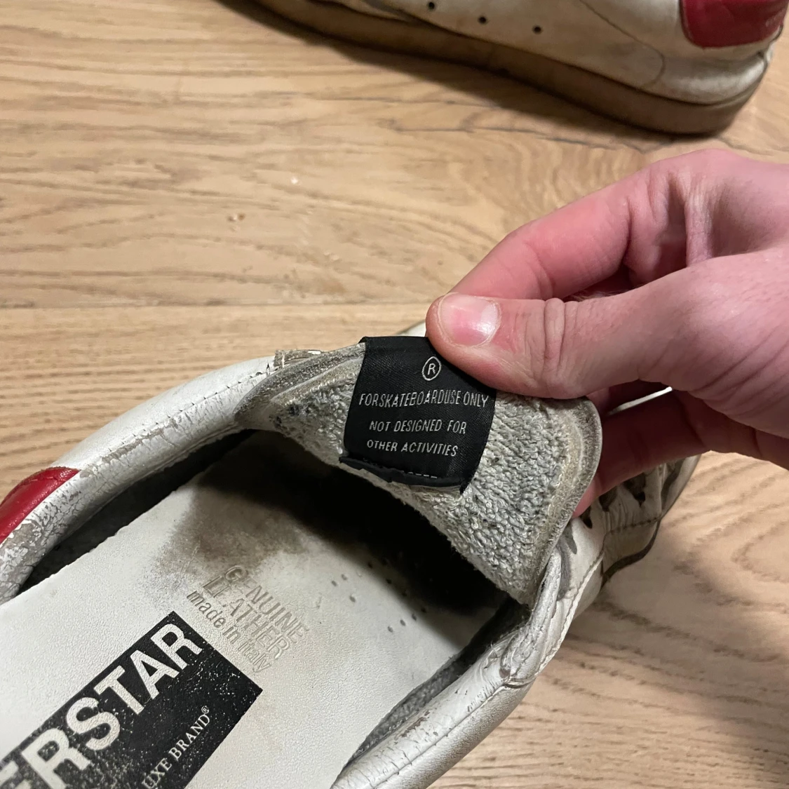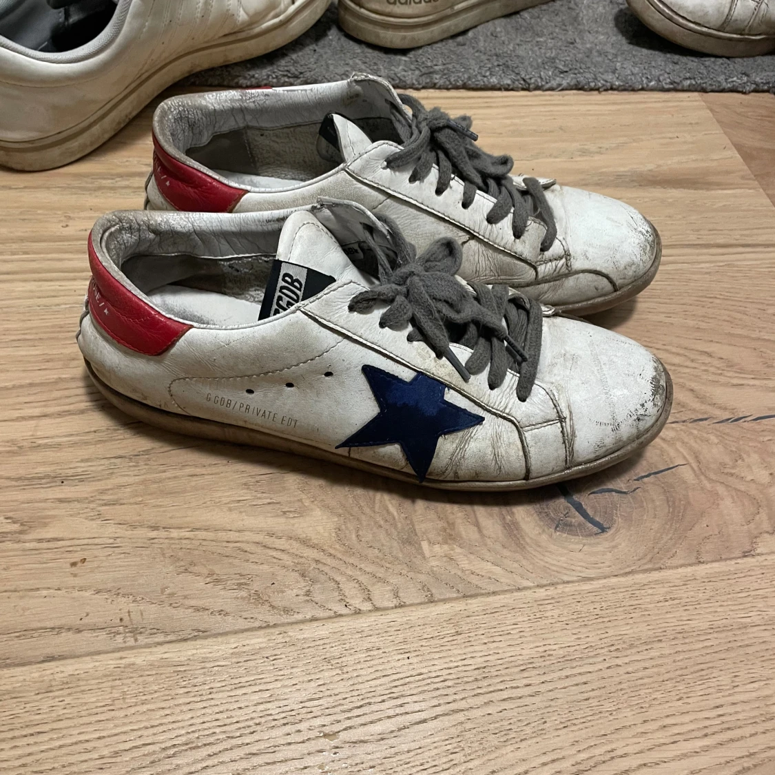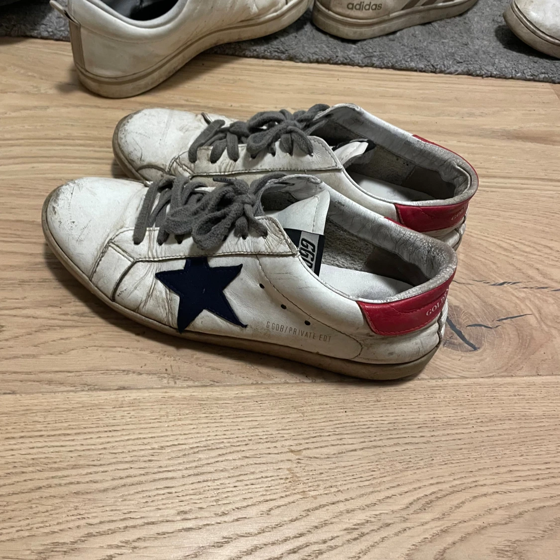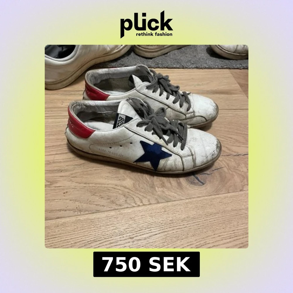 Säljer ett par schyssta Golden goose storlek 43 dom är i hyfsat skick inga hål i sulan som det brukar bli på dom