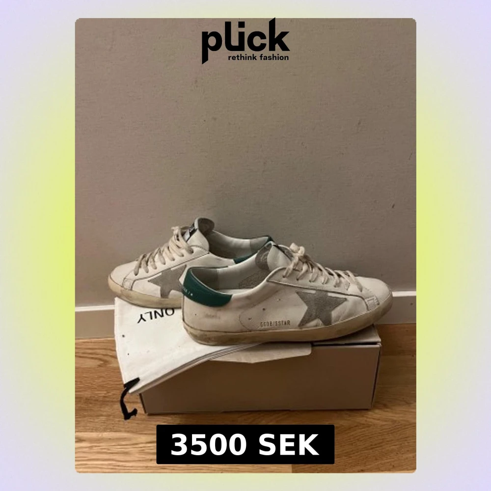 Golden goose skor köpta på selfridges i London för över 6000 dem är äkta och bevis finns tveka inte på att höra av dig om frågor! Passar 42-43 kvitto finns och box och påse tillkommer