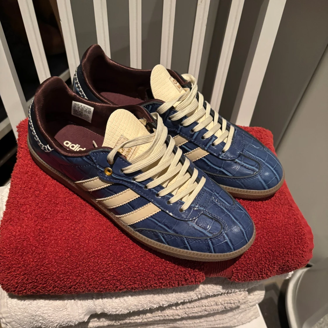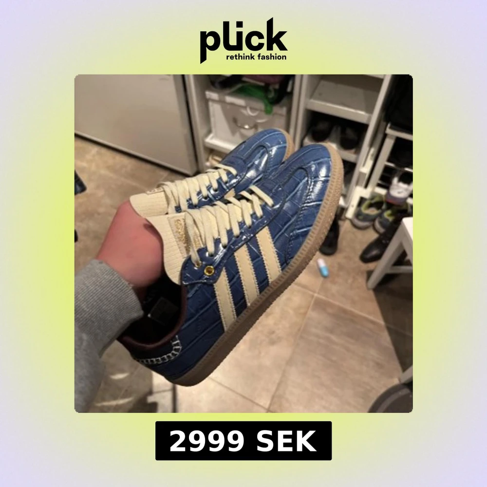 Säljer dom här Wales bonner i blå krokodil skinn, storlek 43 och sitter tts, box och papper från stockX medföljer. För fler frågor är det bara att skriva.