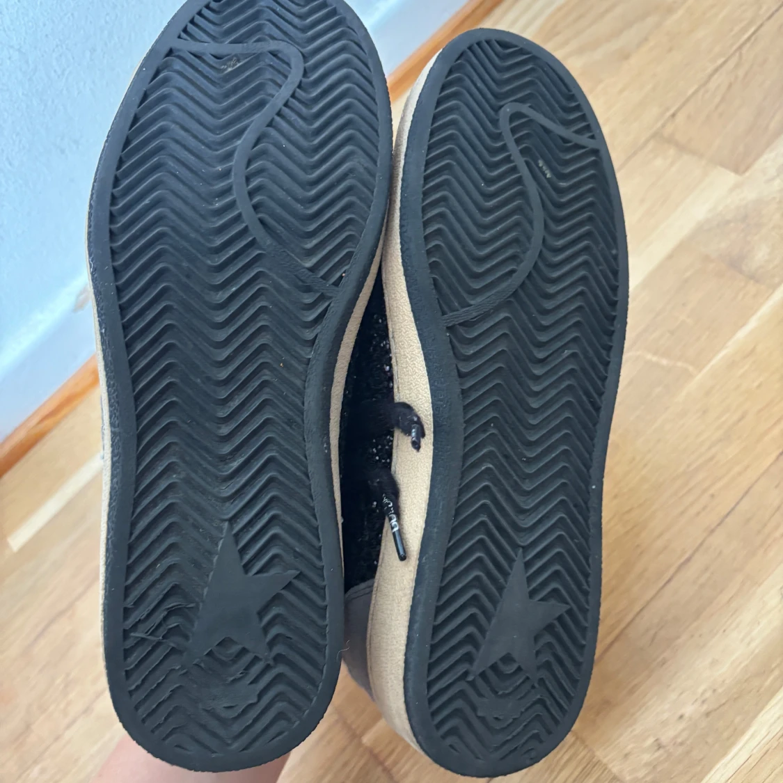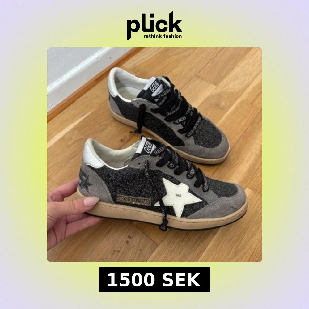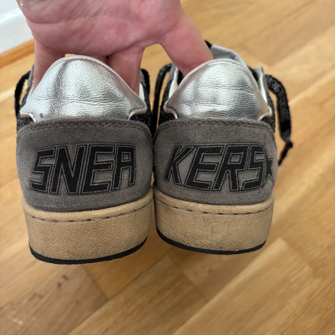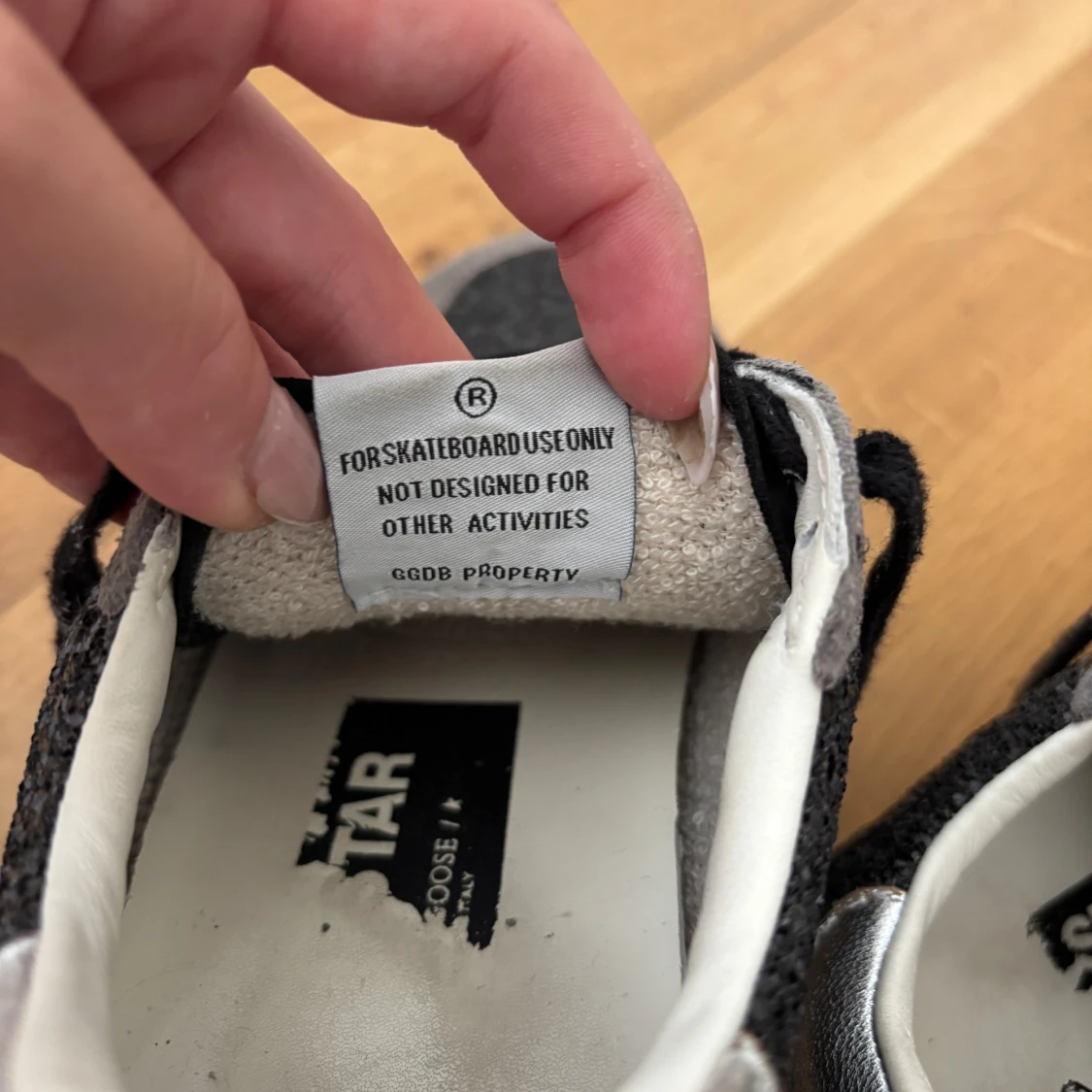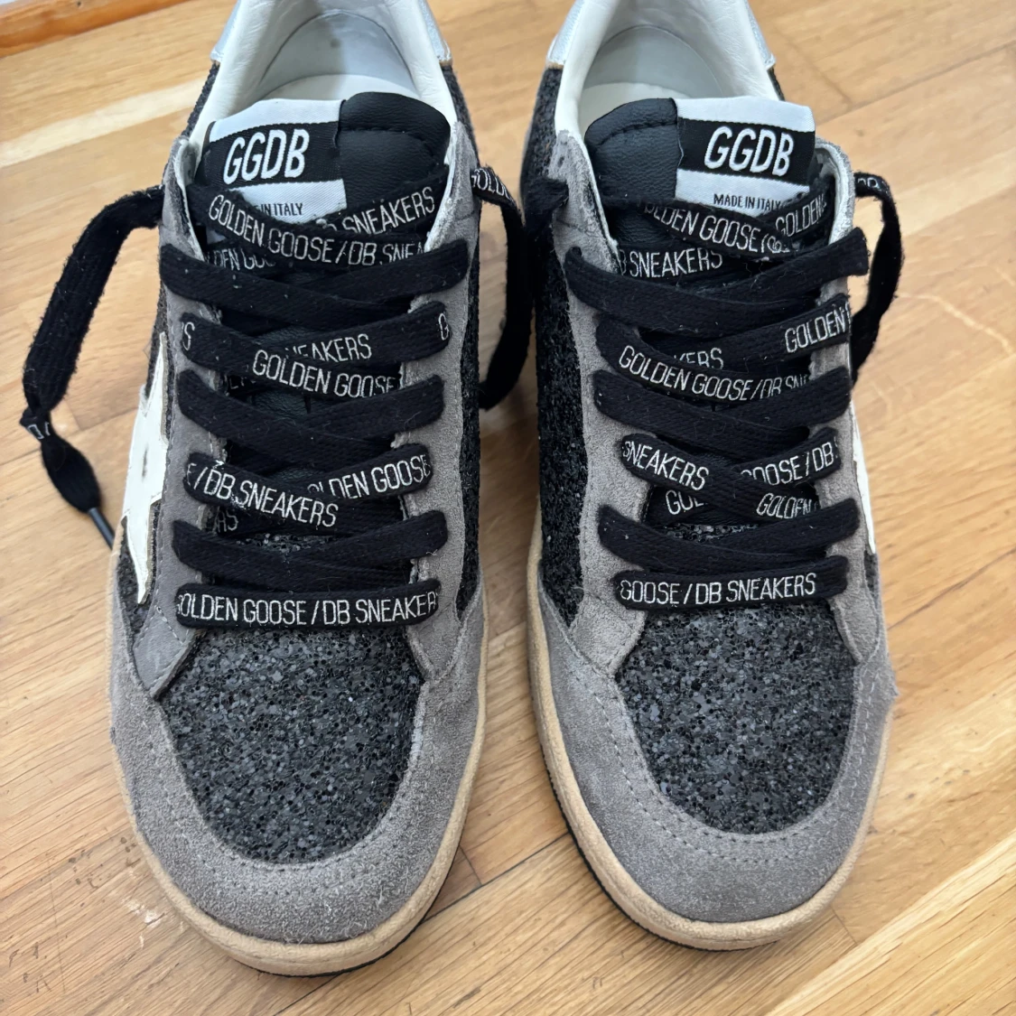 Golden Goose Ballstar sneakers i grå svart glitter, skorna är i bra skick och är i storlek 37.(Endast skor medföljer i köpet)