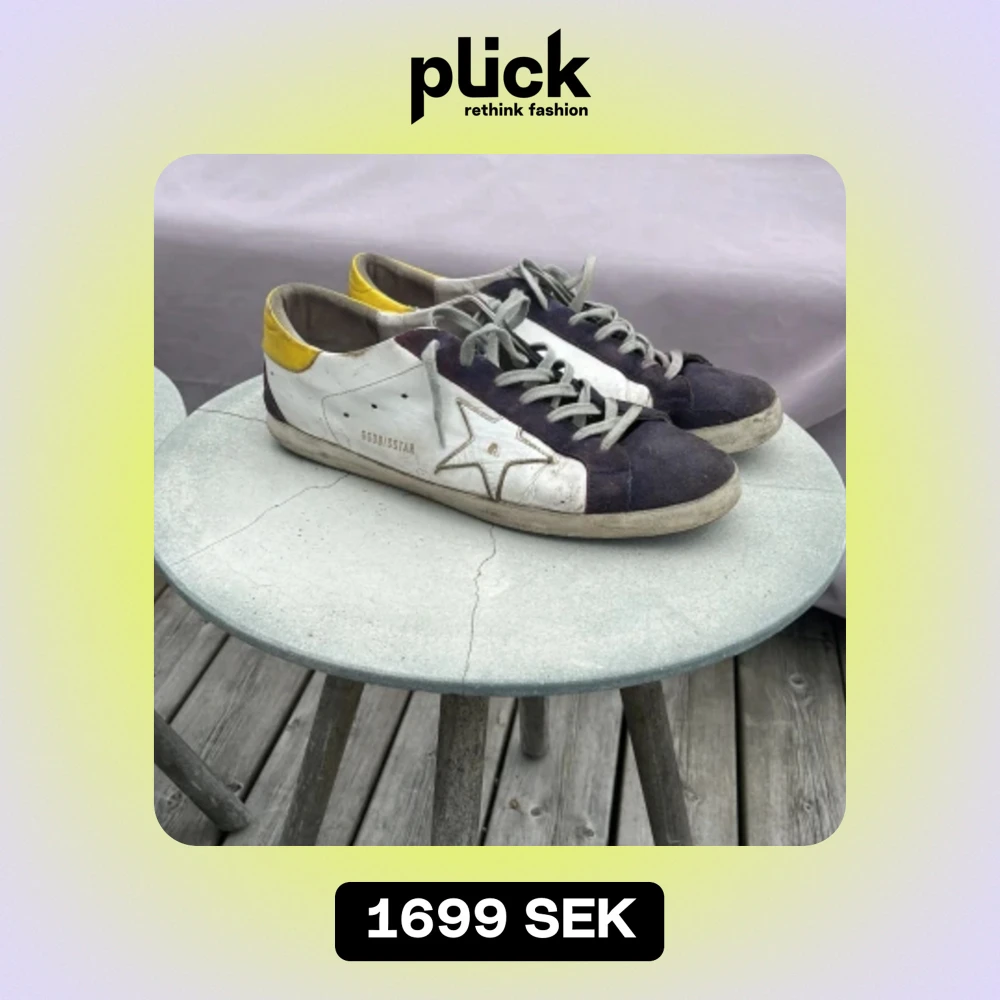 Ett par riktigt snygga Golden Goose. Synligt använda. Endast skorna medföljer. Strl 45