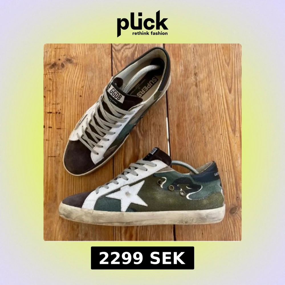 Snygga Golden Goose sneakers med camouflagemönster i grönt, brunt och svart. Bilderna är lite gamla men ser nästan likadana ut, en del slitage på hälen och lite smutsiga, därav pris, skriv gärna för fler bilder.