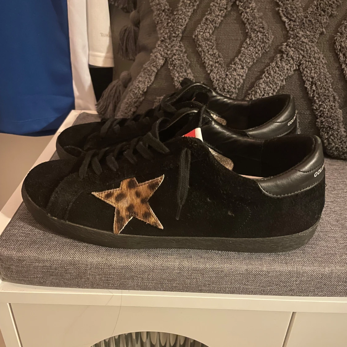 Säljer nu dessa galet feta golden goose skor i nytt skick knappt använda, skon är i mocka med leopard mönster i skinn! Skorna är i storlek 41 men passar 42!Nypris ca: 5000kr mitt pris endast: 2500kr. Kontakta mig via funderingar 😁