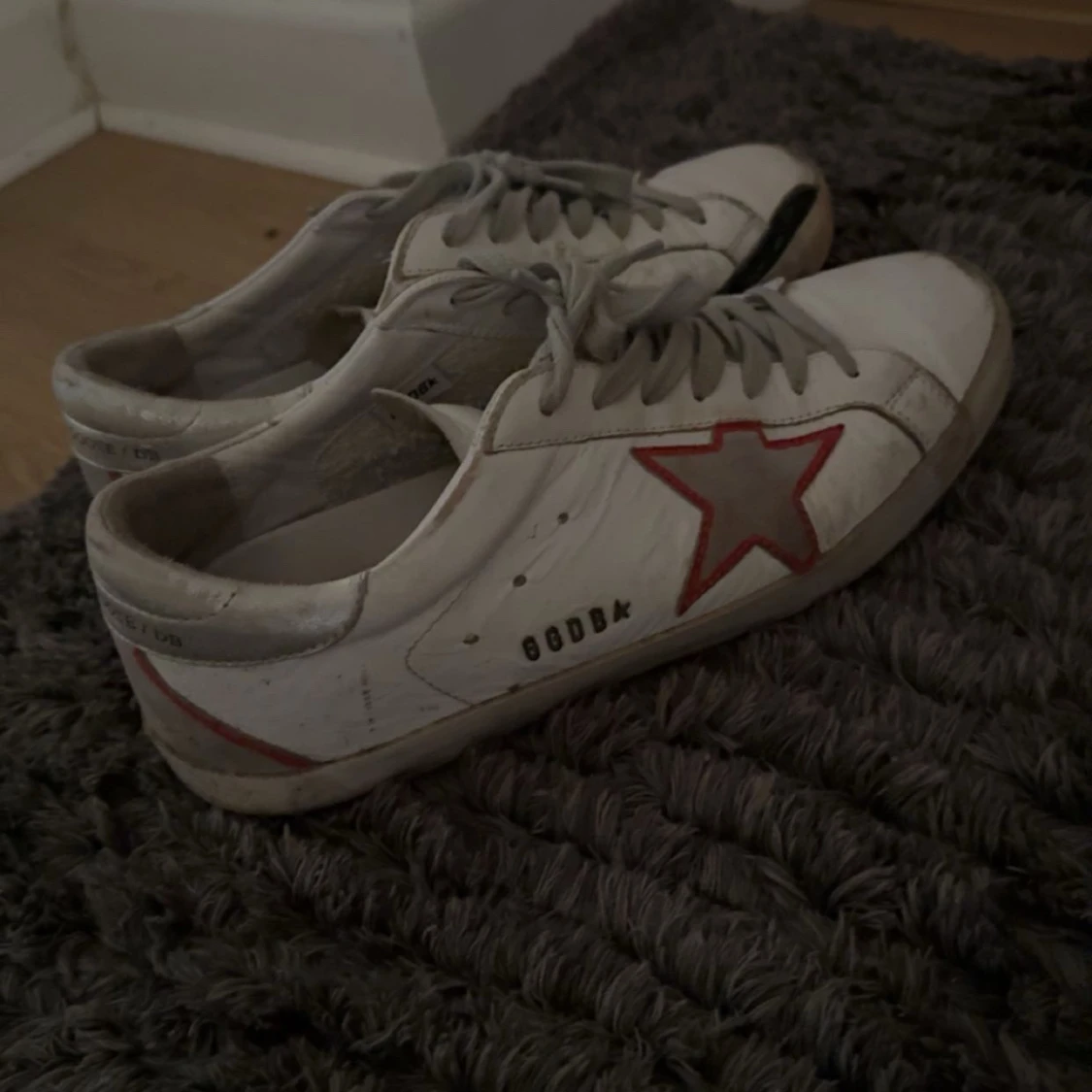 Säljer ett par riktigt snygga Golden goose nypris på dessa 5889 mitt pris 1499🤩pris kan såklart diskuteras vid snabb affär skick 8/10 hör av er om ni har några frågor eller funderingar!🙌🤝