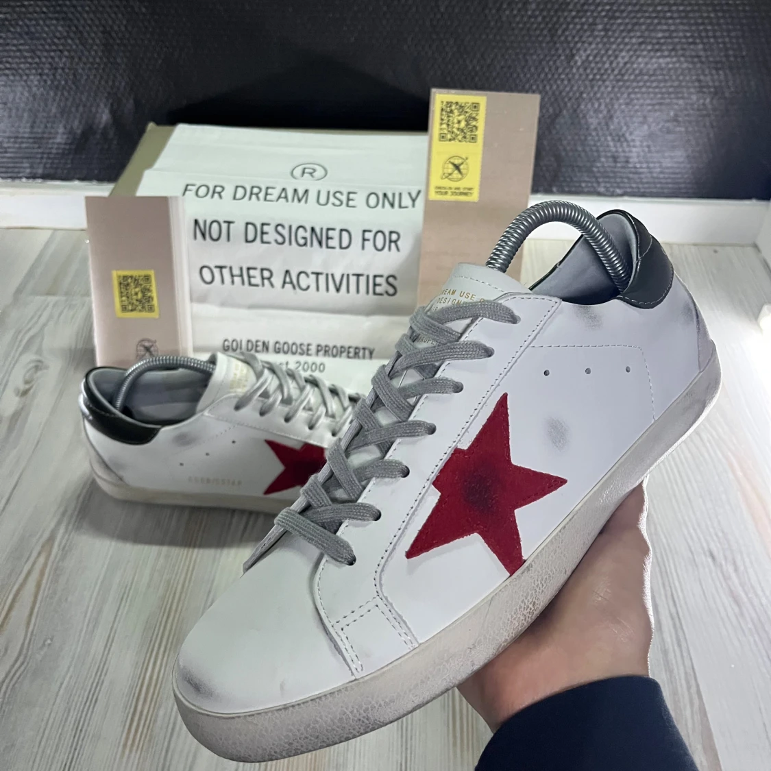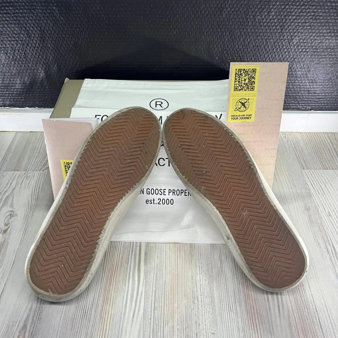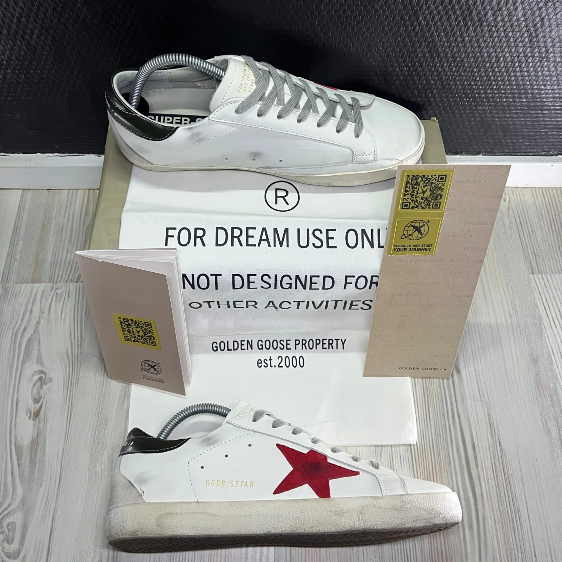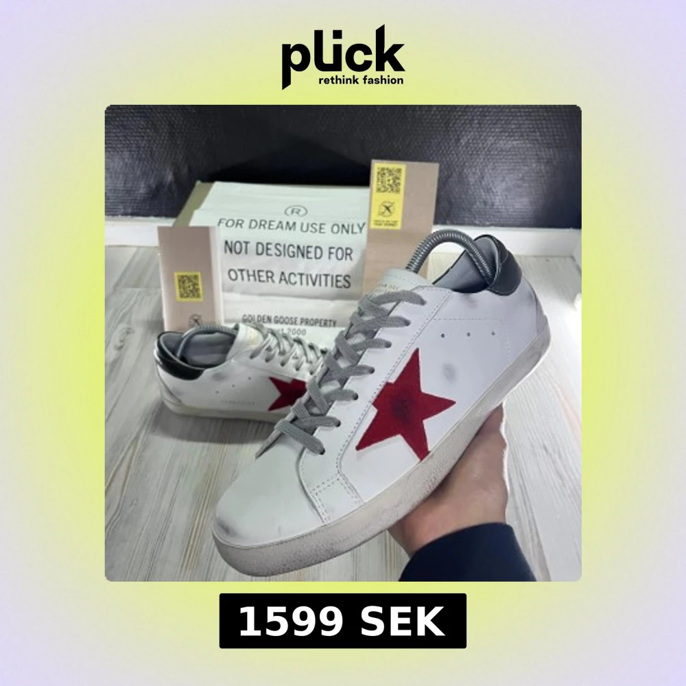 Säljer dessa Golden Goose skor som jag har använt under sommaren🤩 storlek 42 men kan även passa 41. Allt på bilderna följer med och om du undrar över något så är det bara att fråga🙌🏻