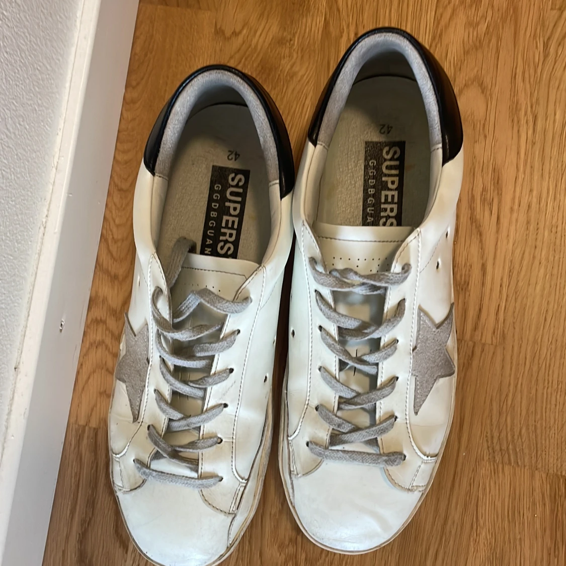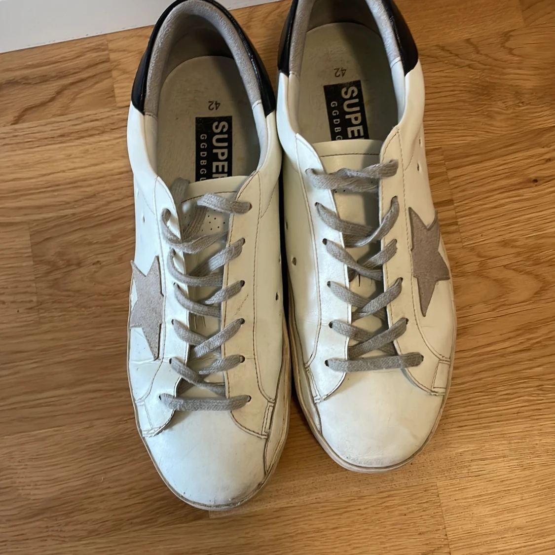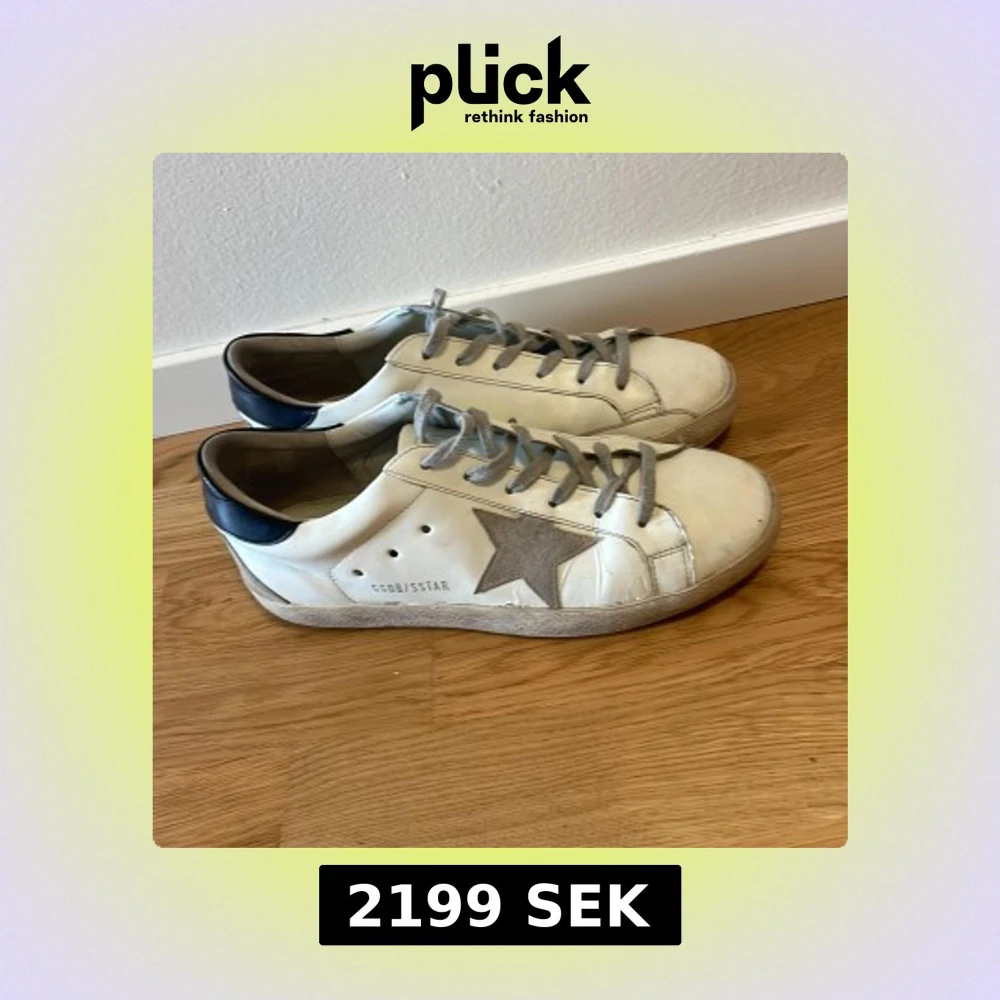Tja, säljer ett par fräscha golden goose i storlek 42 skicket är 8/10 (bara smuts inga defekter)💫💫 vid frågor hör gärna av dig, priset ej hugget i sten 😁💵📈