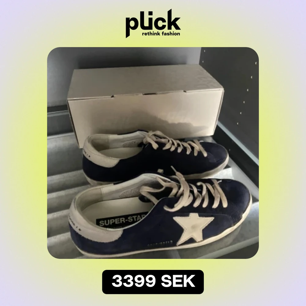 Säljer ett par riktigt snygga blåa Golden Goose skor. De är i storlek 43 och är i ett mycket bra skick. Köpte dessa för ett par månader sedan från miinto. Ordinarie priset för dessa ligger på lite över 5000kr. Jag har även allt OG också.