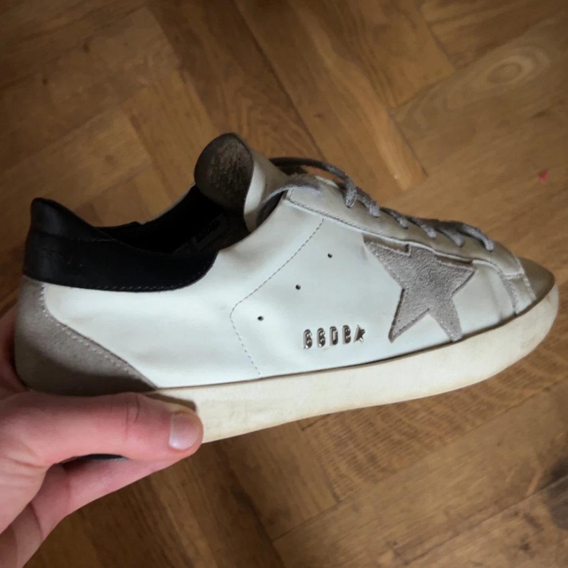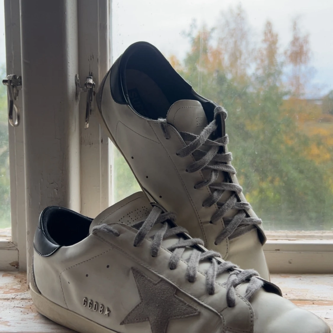 Säljer mina snygga Golden Goose skor, stl 43 👟 Riktigt stilrena och i fint skick – bara använts sparsamt. Perfekta för dig som vill ha lyxiga sneakers med unik karaktär! 💸 Pris: 1 999 kr (öppen för bud vid snabb affär) ✅ Skick: Väl omhändertagna 📍 Finns för upphämtning eller kan skickas
