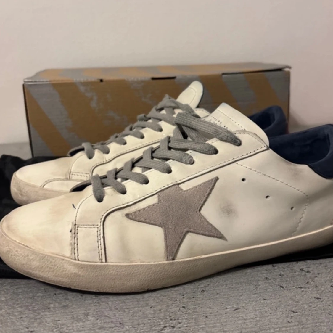 Säljer dessa feta och stiliga Golden Gooses! De är sparsamt använda och är i storlek 43! Dessa är perfekta nu till hösten. Box och dustbag tillkommer! Hör av vid eventuella frågor!