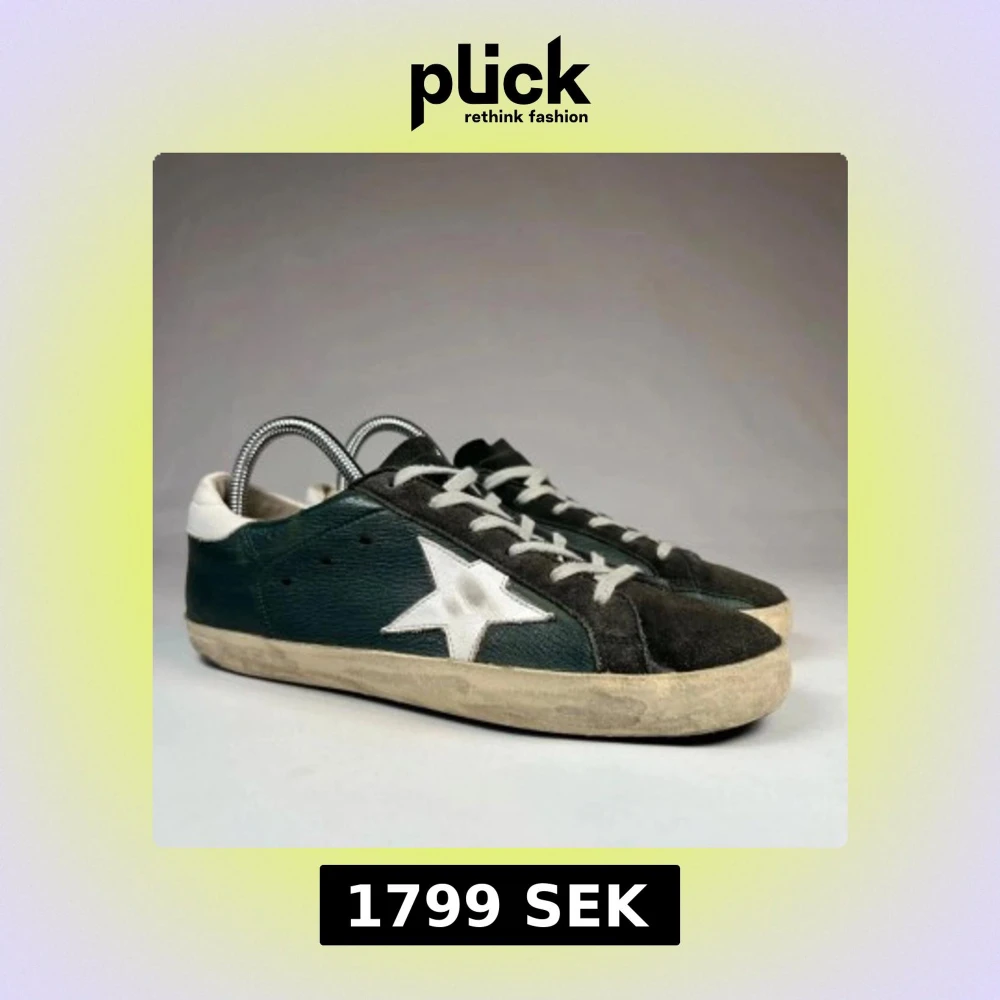 Snygga sneakers i svart och vitt med en stor vit stjärna på sidan. Ovandelen är i skinn och mocka, med vita snören och vit häl. Sulan är platt och har en vintage-look. Perfekta för dig som gillar streetstyle och vill sticka ut.