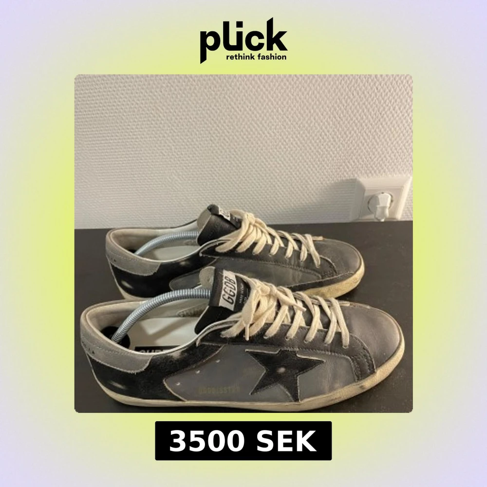 Snygga sneakers från Golden Goose. Svarta och grå i läder som gör dem väldigt slittåliga. Skorna har en vintage-look från början.