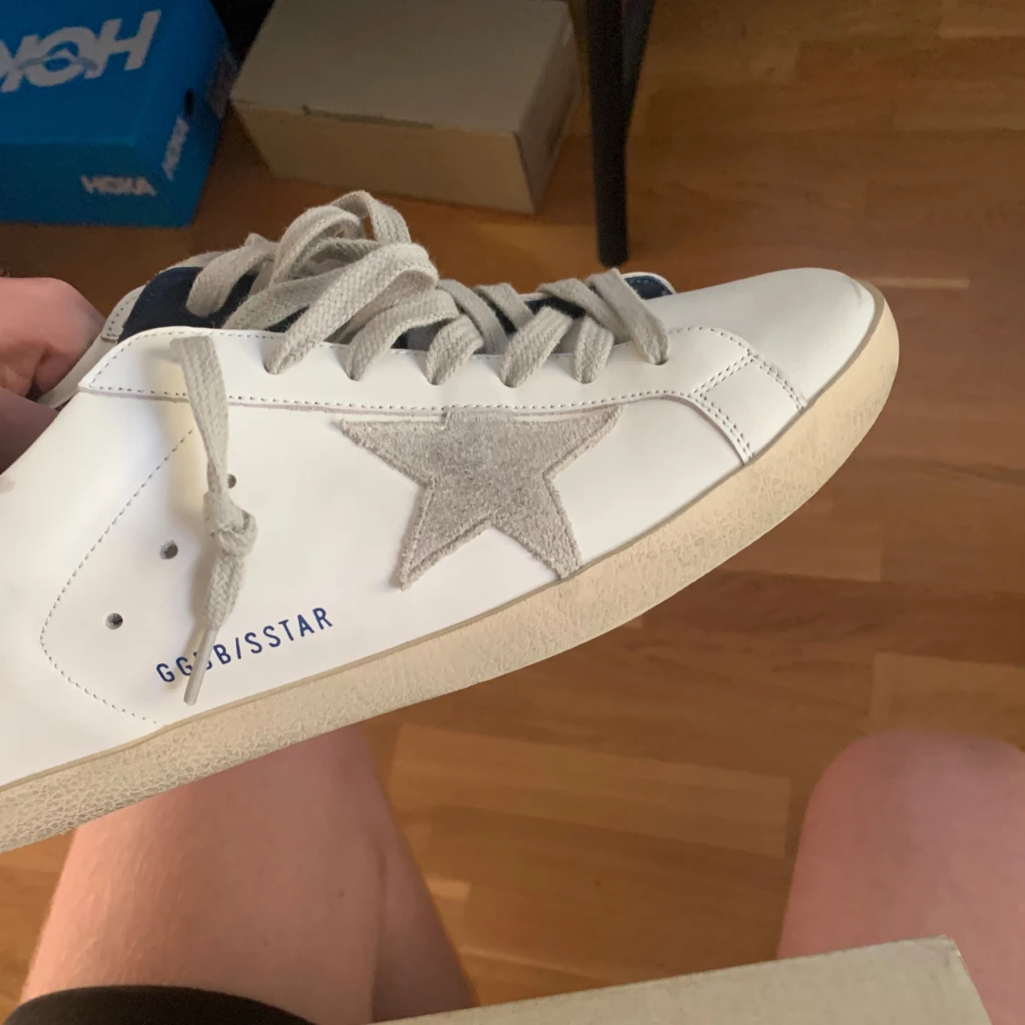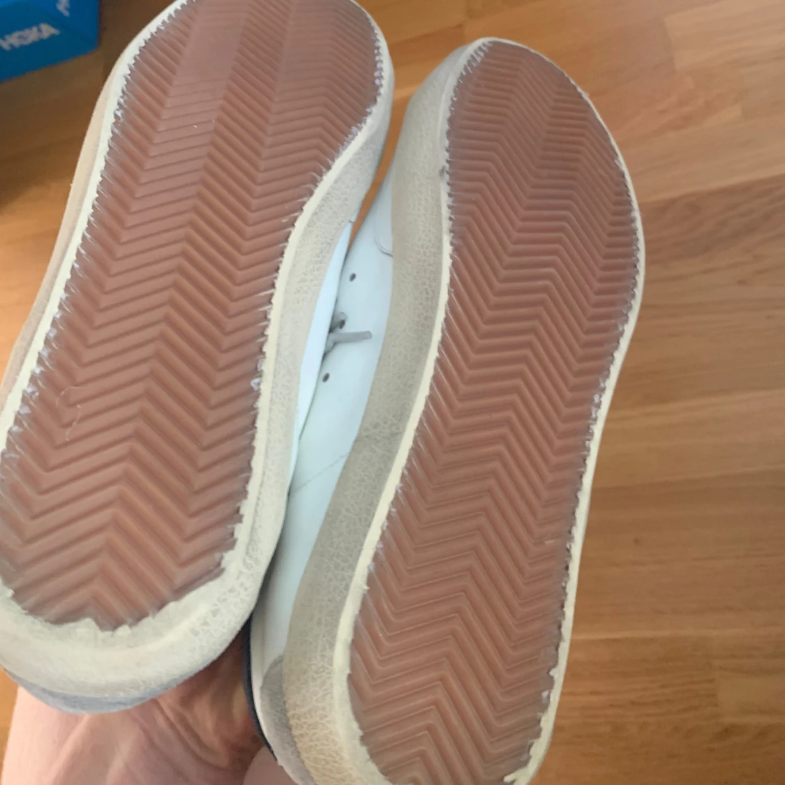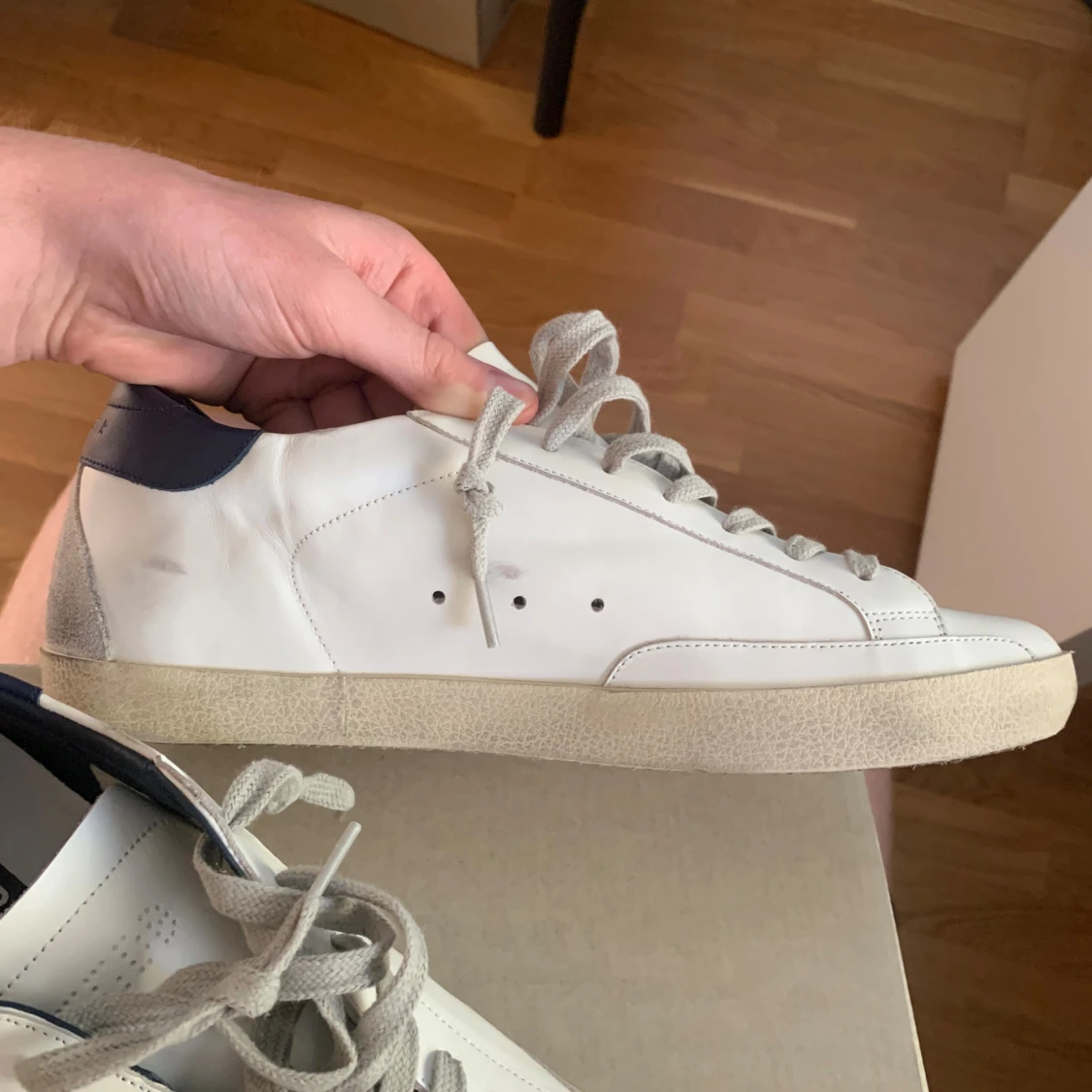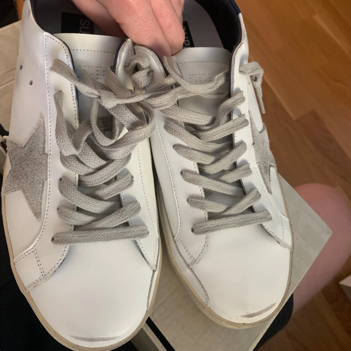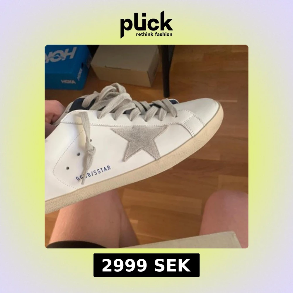 Säljer ett par golden goose superstar white leather. Skorna är i ett väldigt fint skick då jag inte har haft mycket användning för de. Skorna är i storlek 43 dustbag och sertifikat ingår.