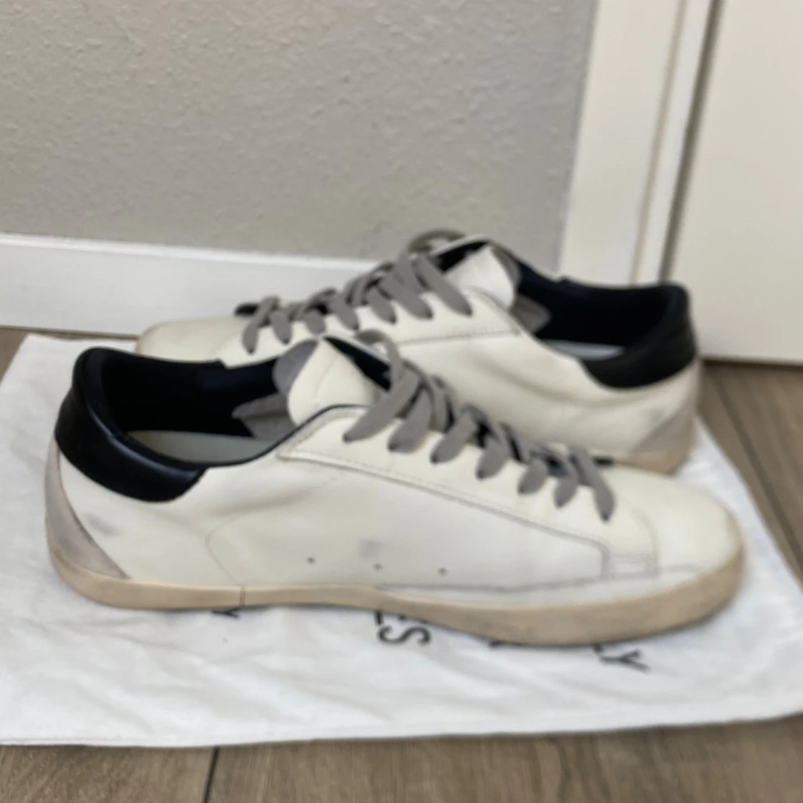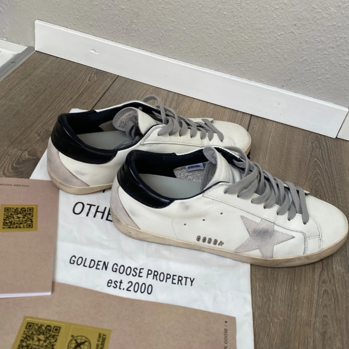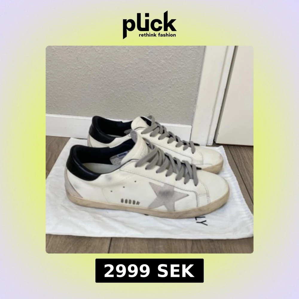 Säljer ett para golden goose stl 43 använda ett fåtal gånger i jätte fint skick. hör gärna av dig om du har frågor eller tveka inte på att lämna ett bud Mvh Melker