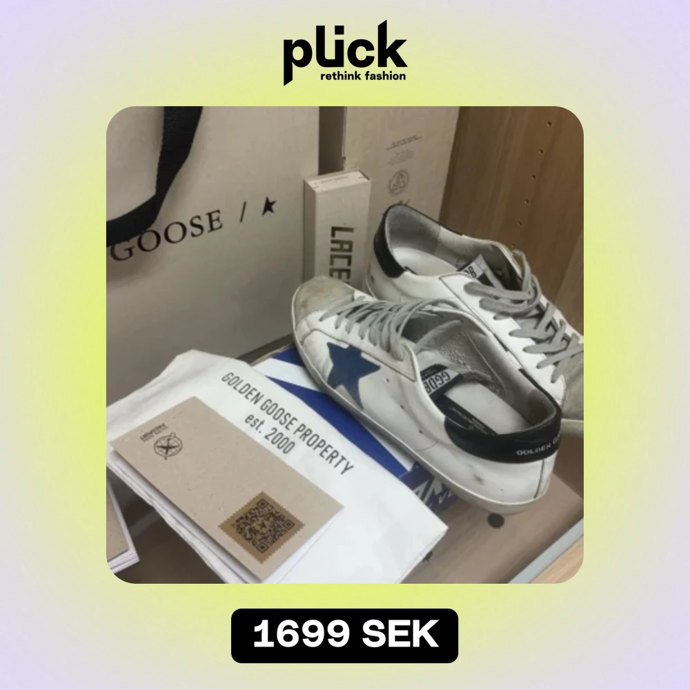 Säljer dessa sjukt snygga Golden Goose Superstar. Skick:6/10 behöver en rejäl tvätt 😅 Storlek: 41 men passar 42 utan problem. Låda, dustbag, passport följer med. Givetvis äkta! Om ni vill lägga L/C är de ba o fråga om fler bilder 🙌!
