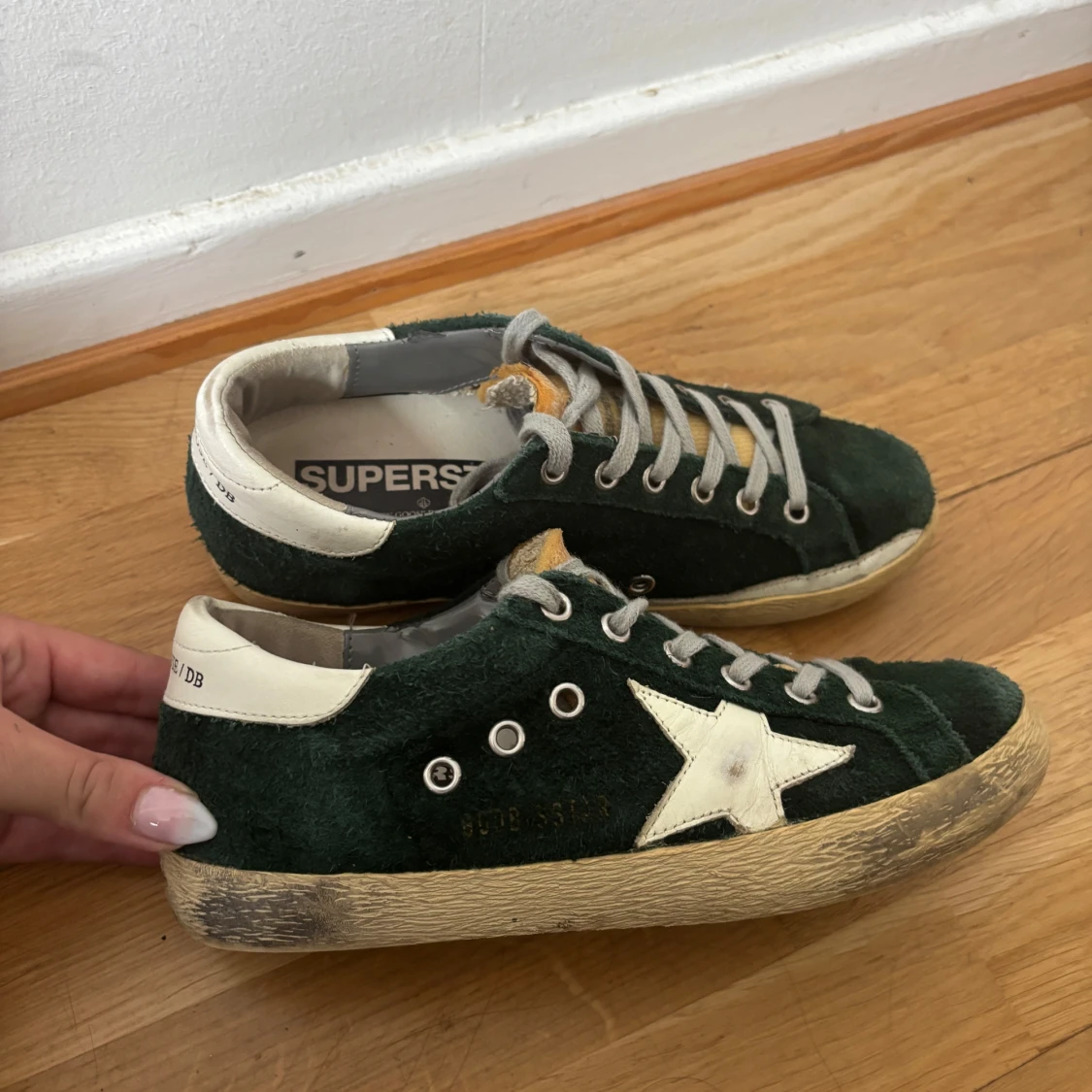 Golden Goose superstars i mocka grönt. Skorna är i bra skick och är i storlek 36(endast skor medföljer i köpet)