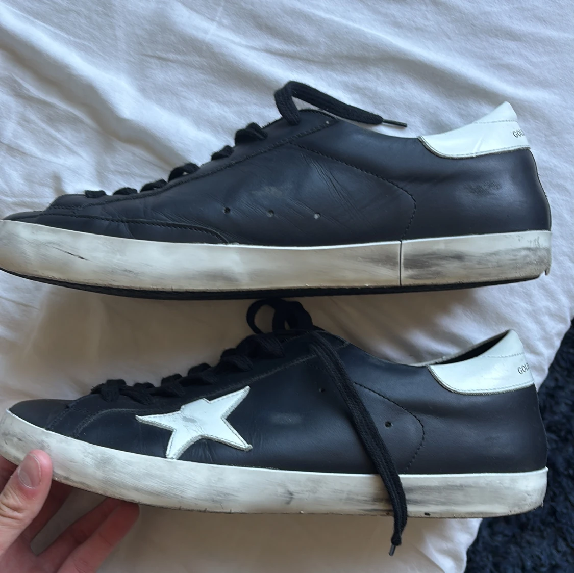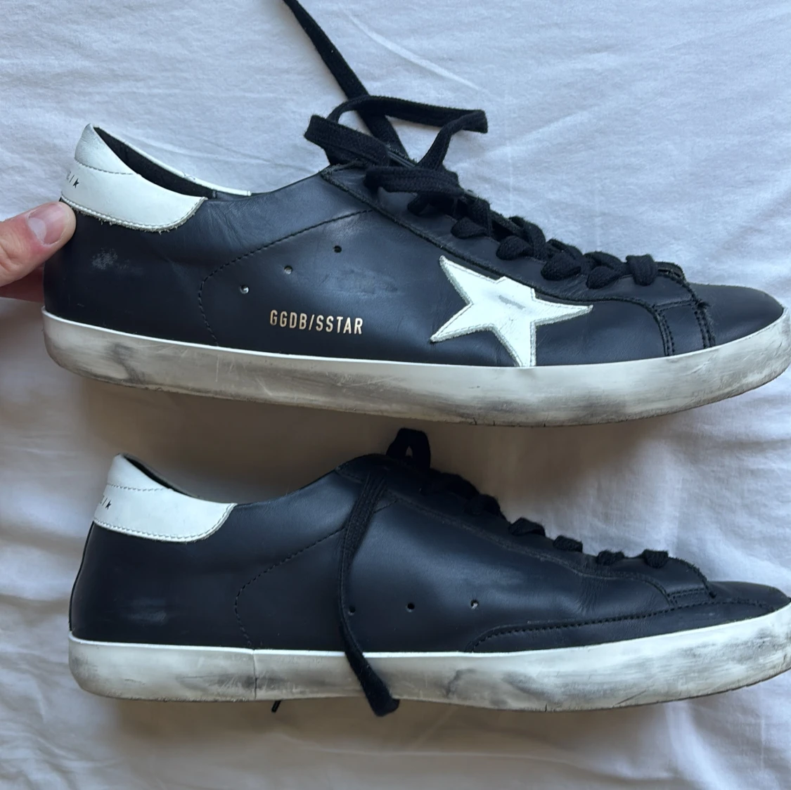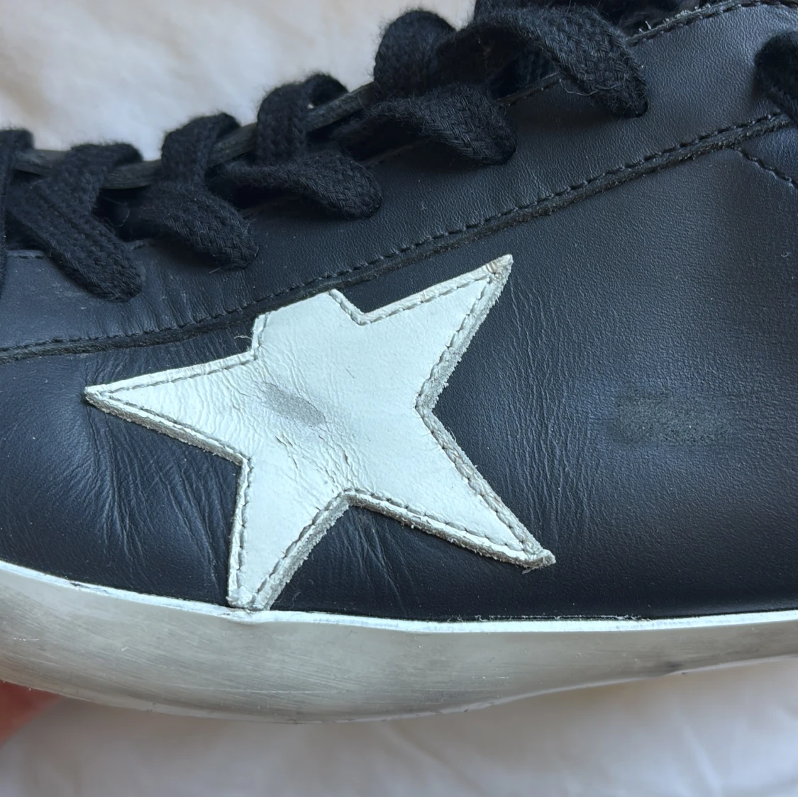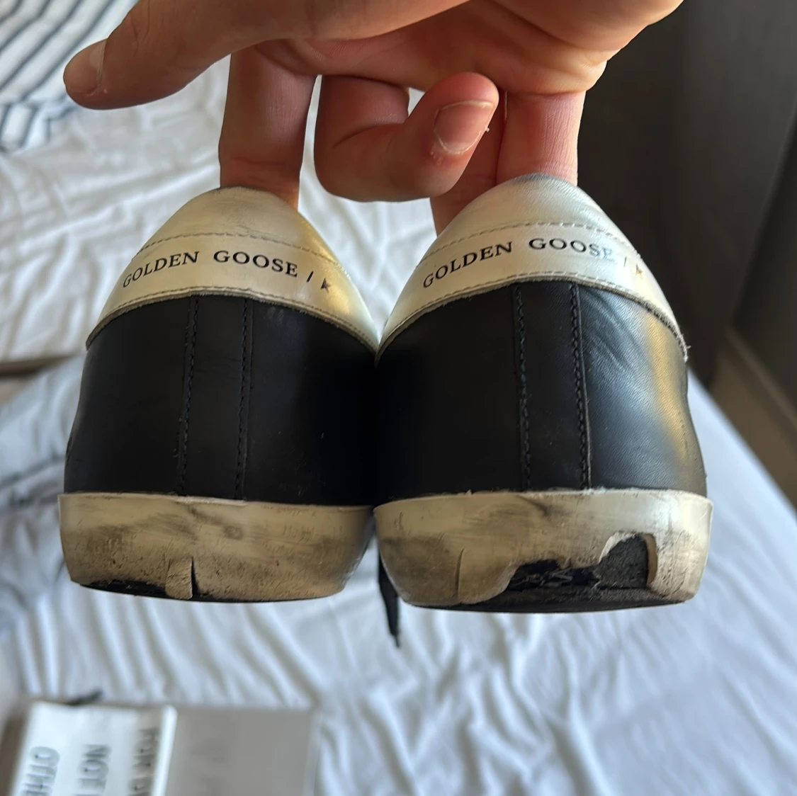 Säljer mina golden goose i ortrolitr bra skick bortsett från hälen där den spruckit lite. Box o påse ingår ej. Hör av dig vid frågor. Äkta såklart!