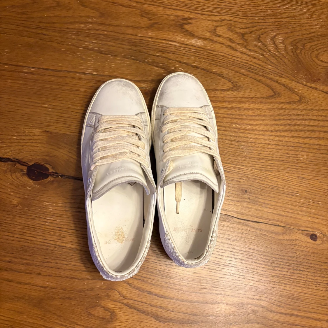 Tvär sköna unika vita sneakers från ysl. Skick 7-8/10. Skorna är i storlek 39.5 men de sitter som 40-41. Priset är förhandlingsbart vid en snabb affär. MVH vi på von ädi closet🍾