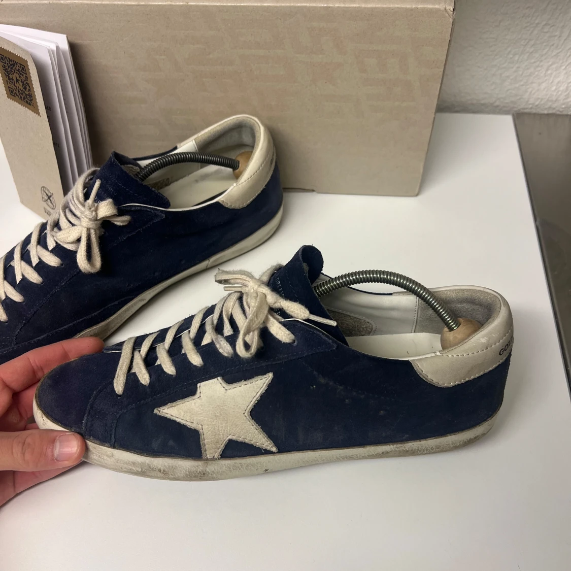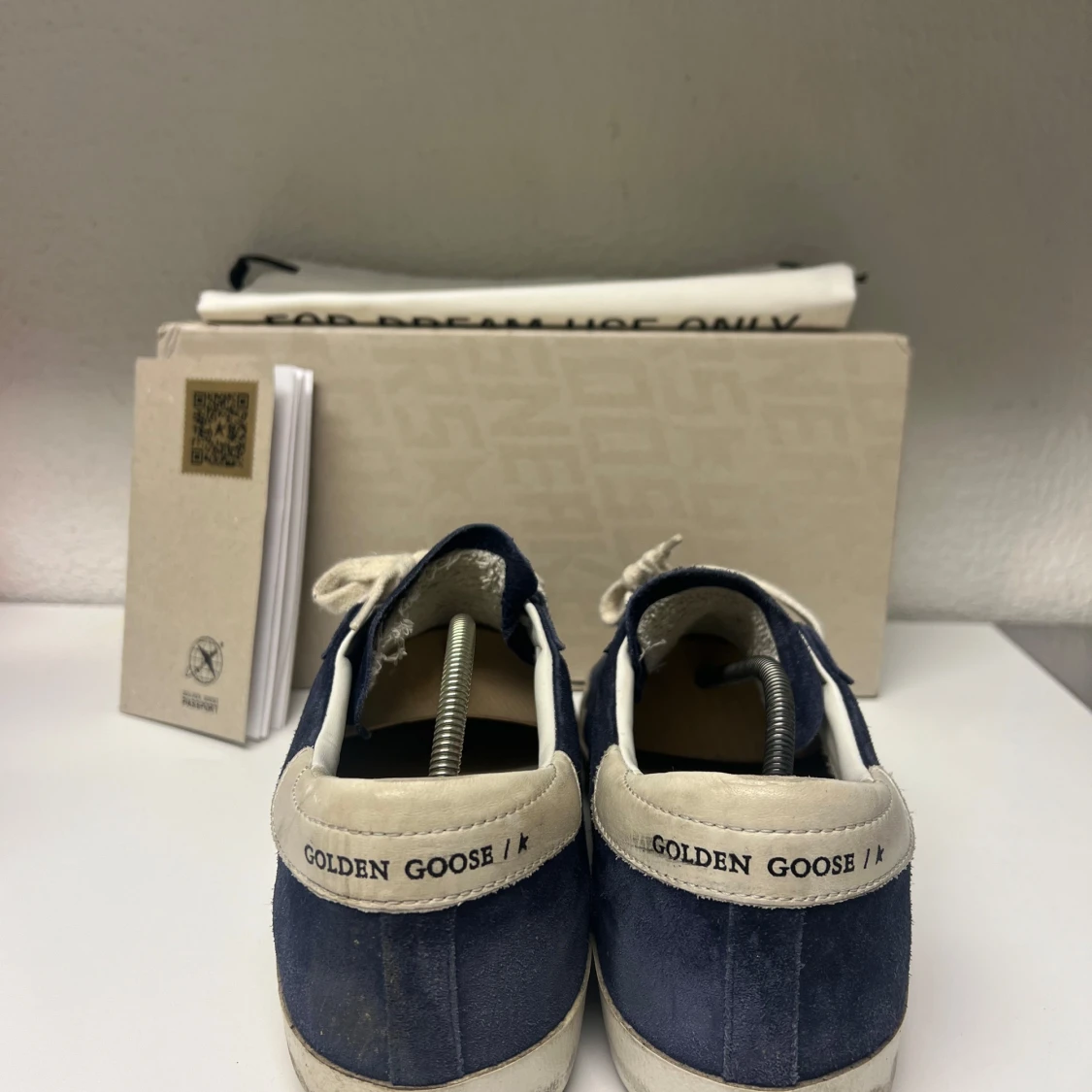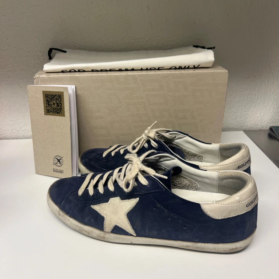 Säljer mina feta Golden Goose sneakers. Skick 8/10 mycket bra, inga defekter. Köpta från miinto helt nya för ca 1 år sedan. Bara använda på sommaren. Allt og ingår. Kan tänka mig att gå ner i pris vid snabb affär. Storlek 42