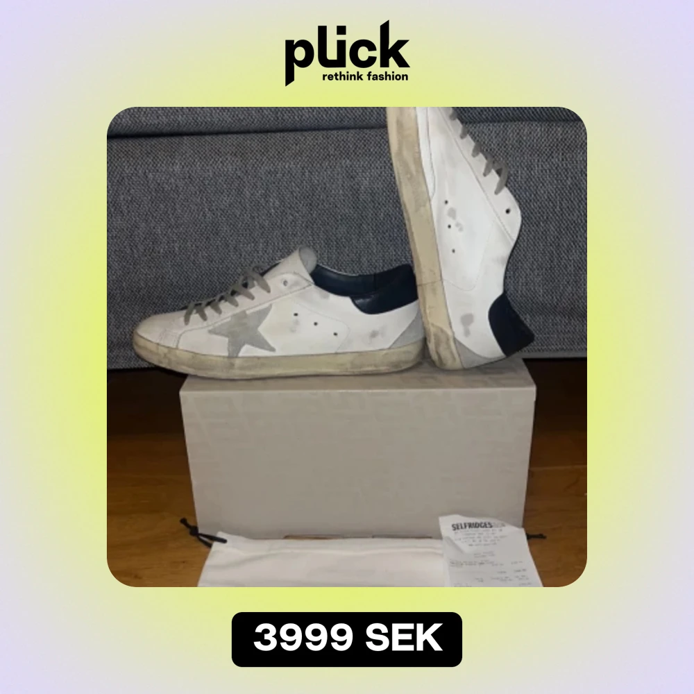 Tja! Nu säljer vi ett par golden goose skor i riktigt fint skick. Skorna är köpta på selfridges i London för strax över 5600kr, storlek 43,5, allt orginal medkommer, kvitto, orginal box, dustbags, certifikat etc. Släng iväg en fråga vid funderingar!