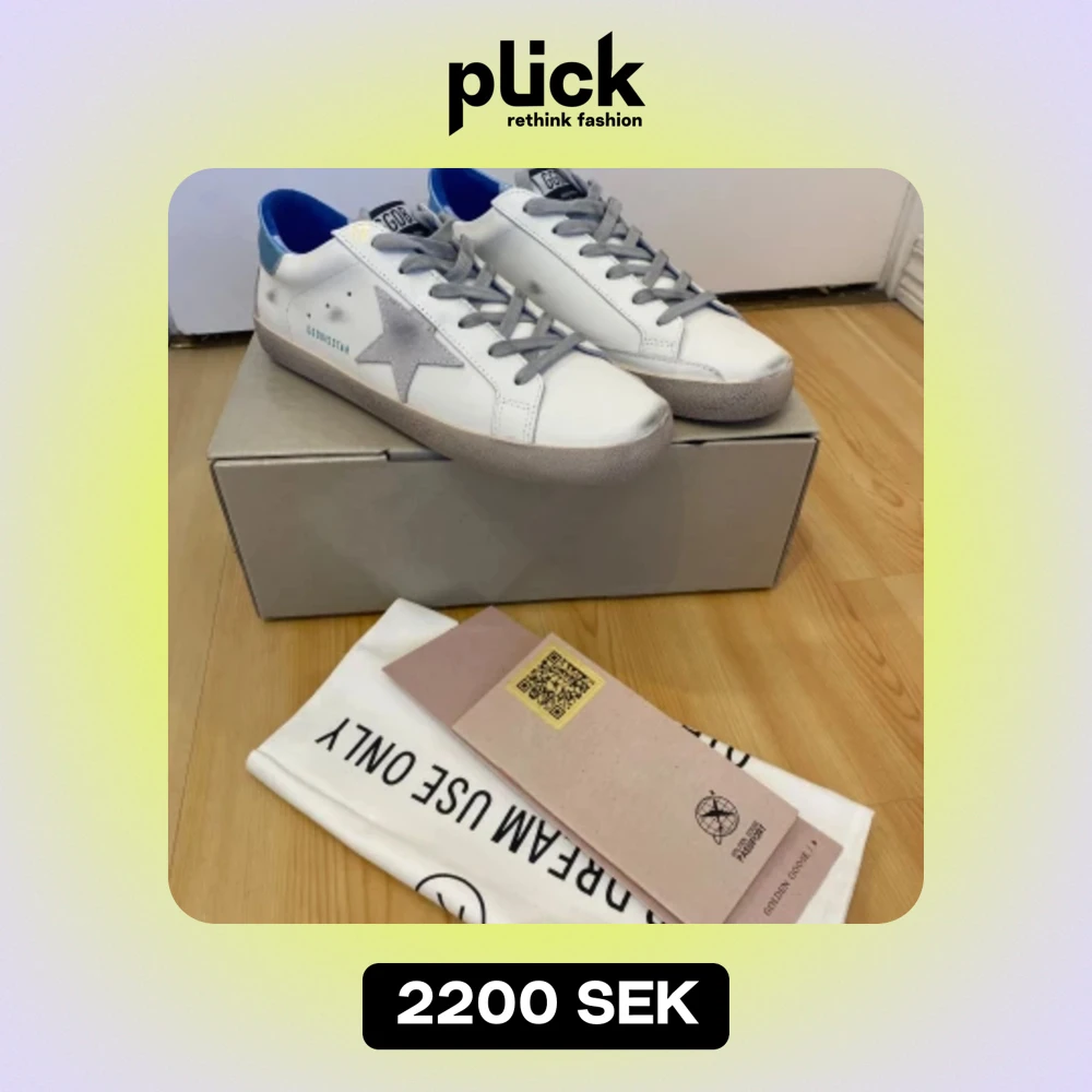 Säljer dessa helt nya golden goose skor som har används 1 gång. Allt tillbehör är kvar (dust bag, köp bevis och original förpackningen) skorna är i storlek 41 men passar också som 40.