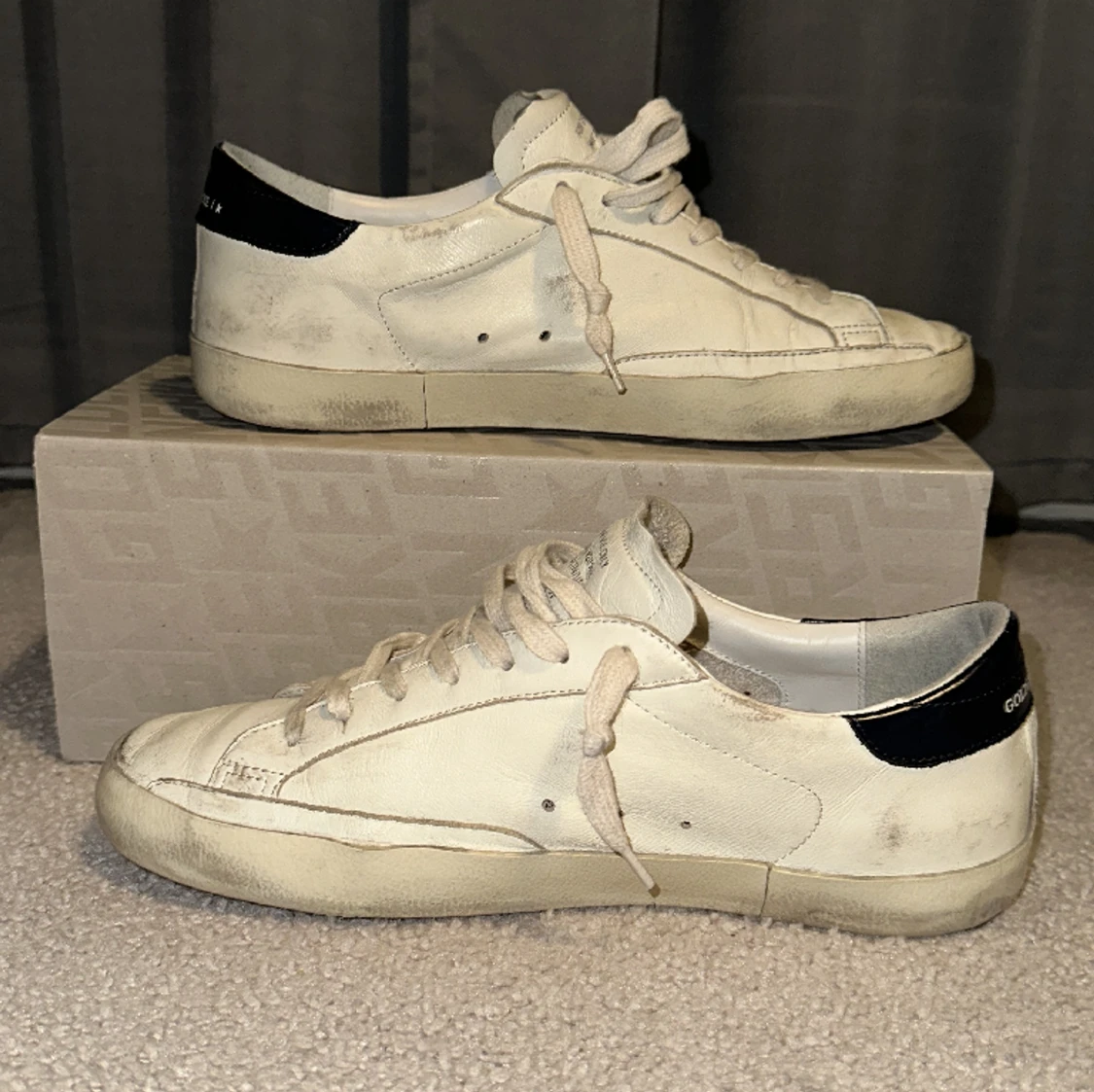 Säljer mina golden goose sneakers då dem sällan används. Dem är köpta på CareOfCarl (onlinekvitto finns), i juli 2023. Lite crease-deffekter fram på båda, men inget som man tänker på när skorna används. Vid fler frågor bara att skriva. Pris diskuteras ej.