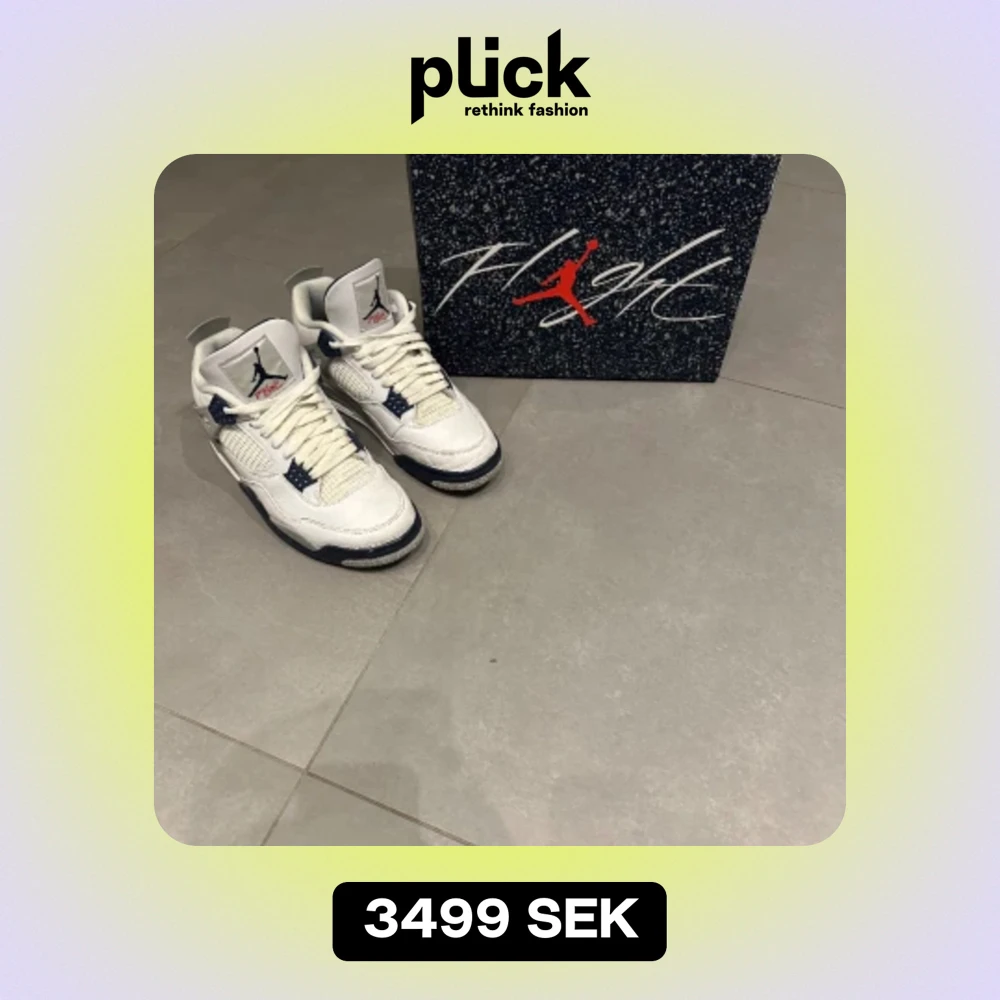 Jordan 4 Midnight Navy. Använt Max 5 gånger. 10/10 skick. Pris kan diskuteras privat vid snabb försäljning. Självklart helt äkta med box!