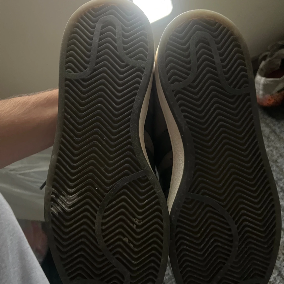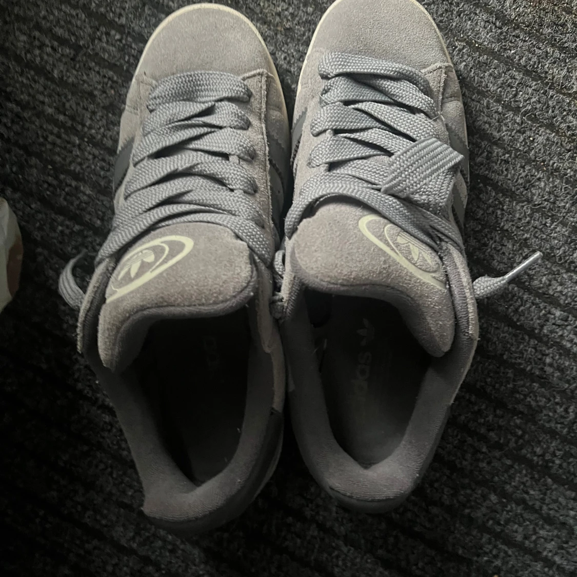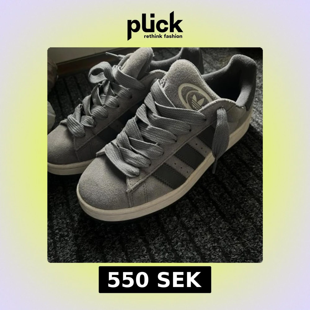Snygga grå sneakers från Adidas med klassiska svarta ränder på sidorna och logga på plösen. Skorna har breda grå snören och en mjuk mocka-överdel. Yttersulan är vit med svart undersida och har en platt sula. Perfekt för dig som gillar stilrena och sportiga skor.