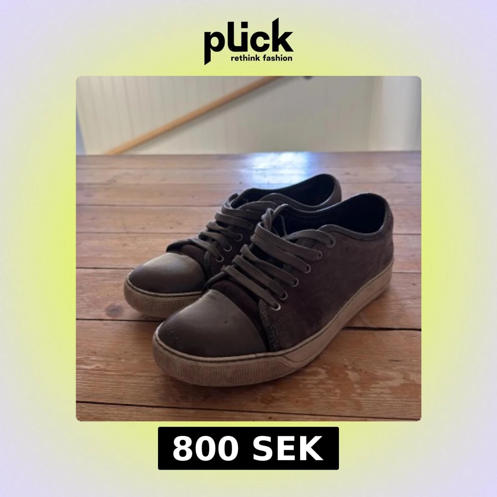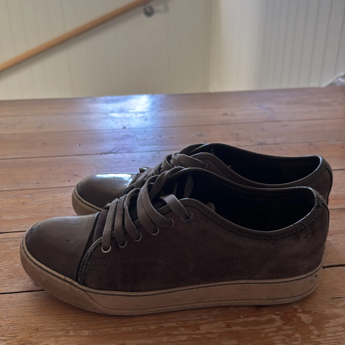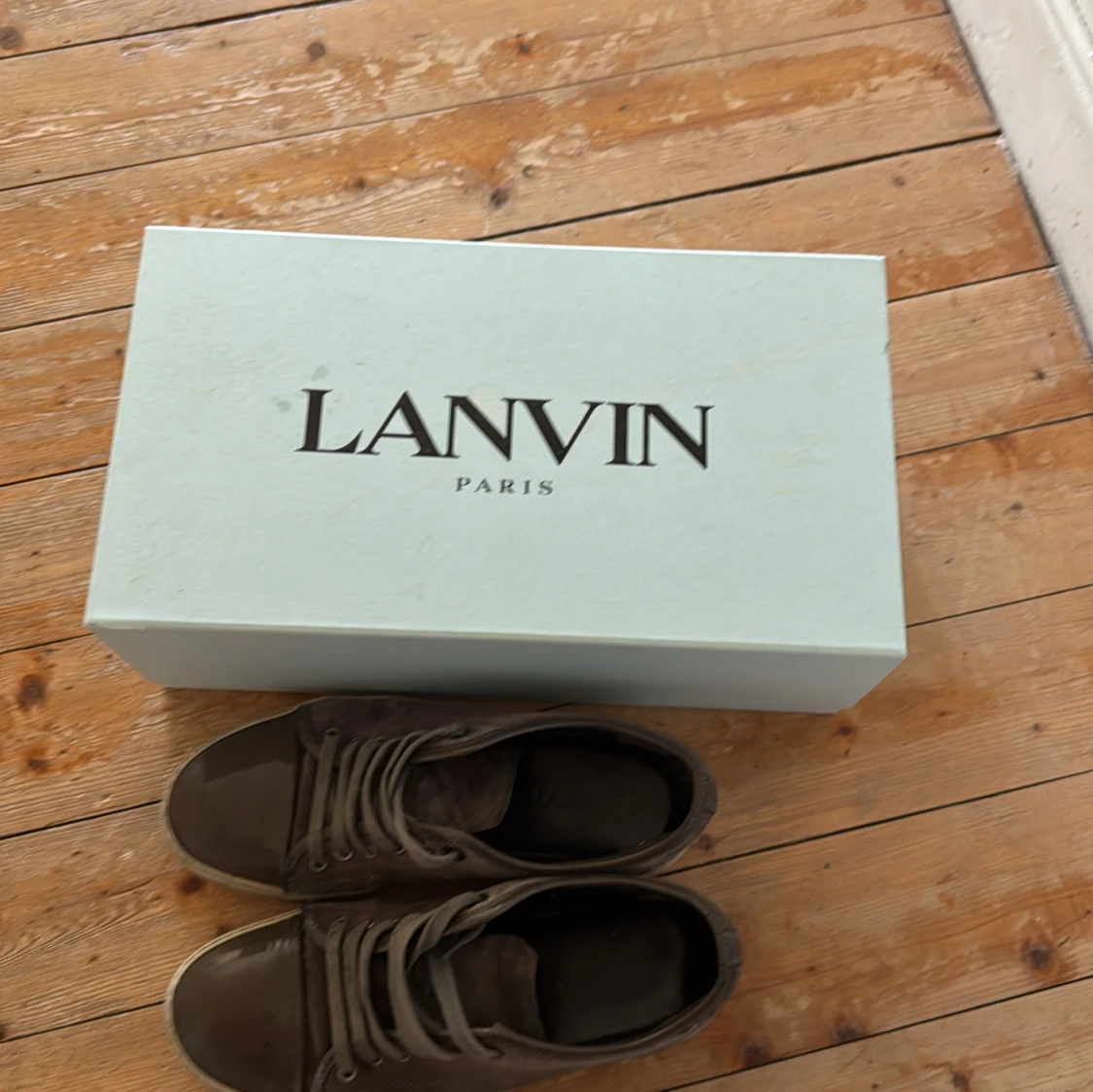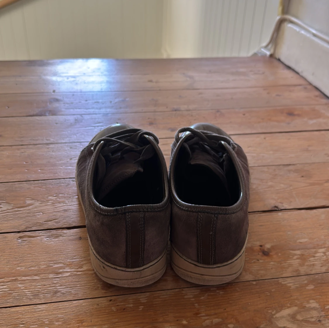 Snygga bruna sneakers från Lanvin med snörning och en stilren design. Skorna har en kombination av mocka och skinn vilket ger dem en lyxig känsla. Perfekta för en avslappnad men elegant stil.